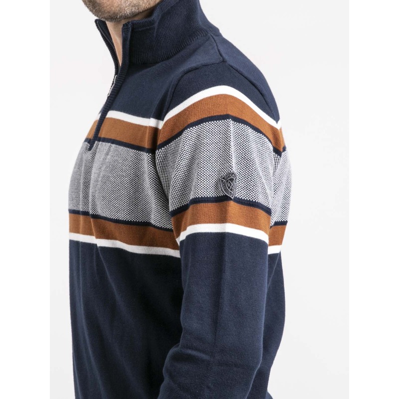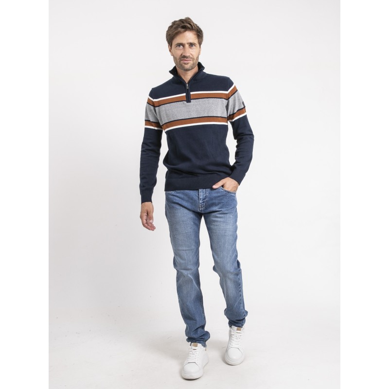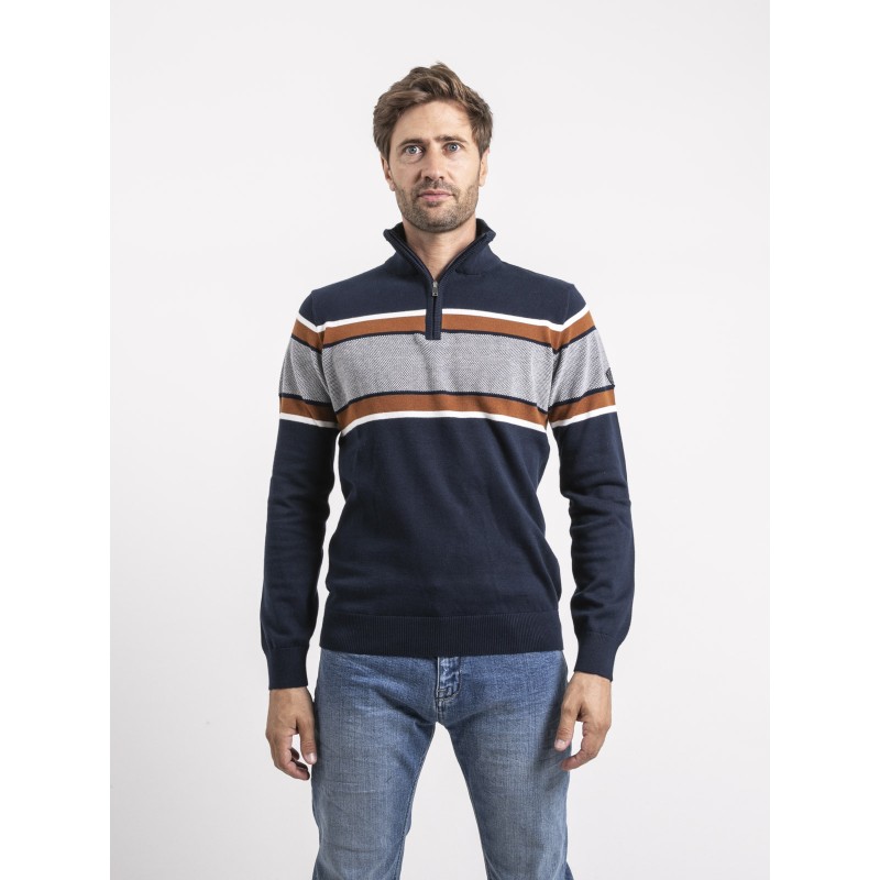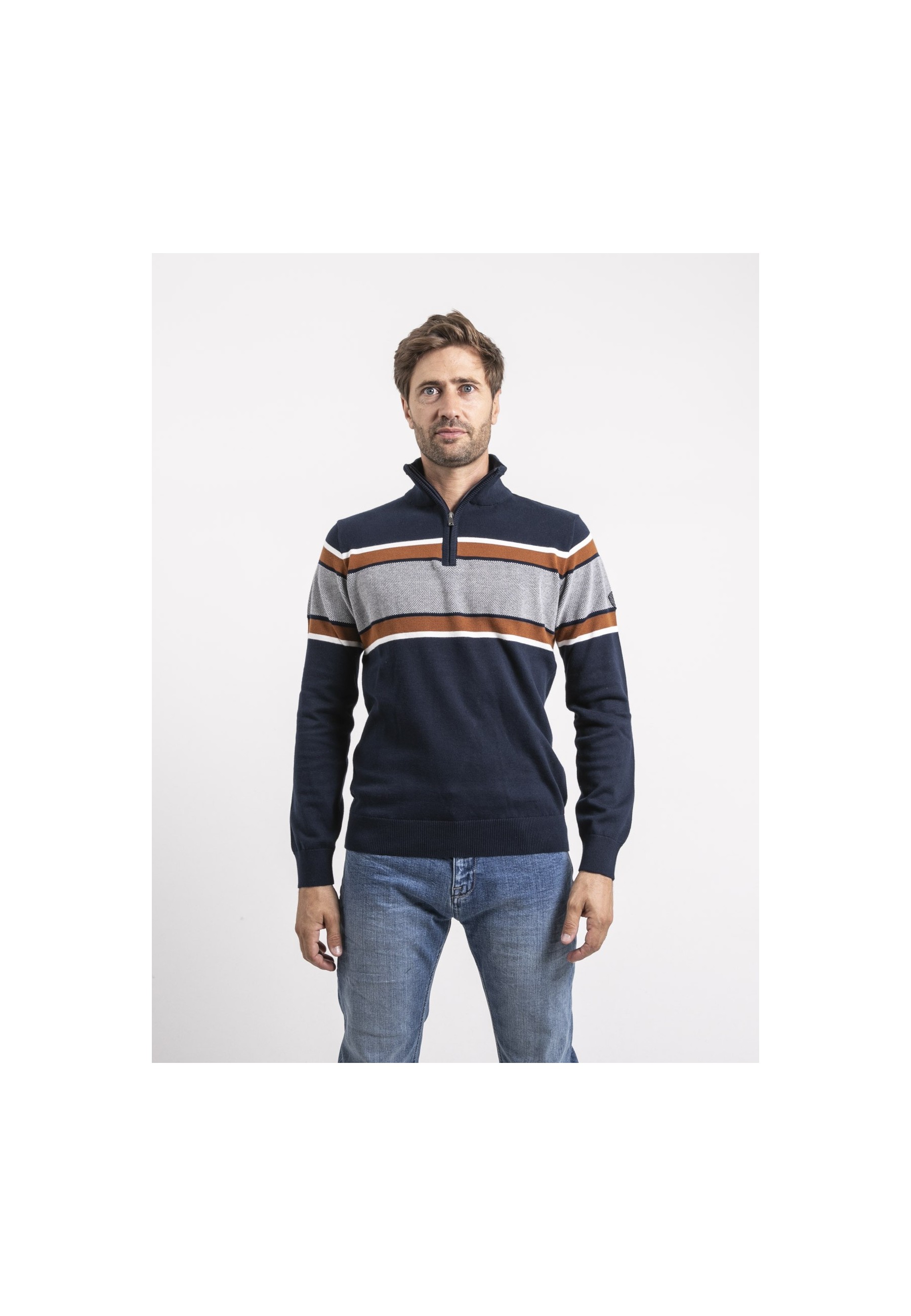 Avec sa maille élégante et son col zippé, ce pull est parfait pour affronter les températures fraîches avec style. Les rayures horizontales ajoutent une touche graphique qui modernise un classique intemporel. Portez-le avec un jean pour une allure décontractée et soignée, idéal pour les journées d'hiver.