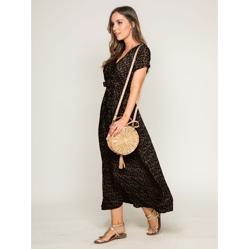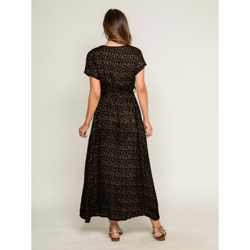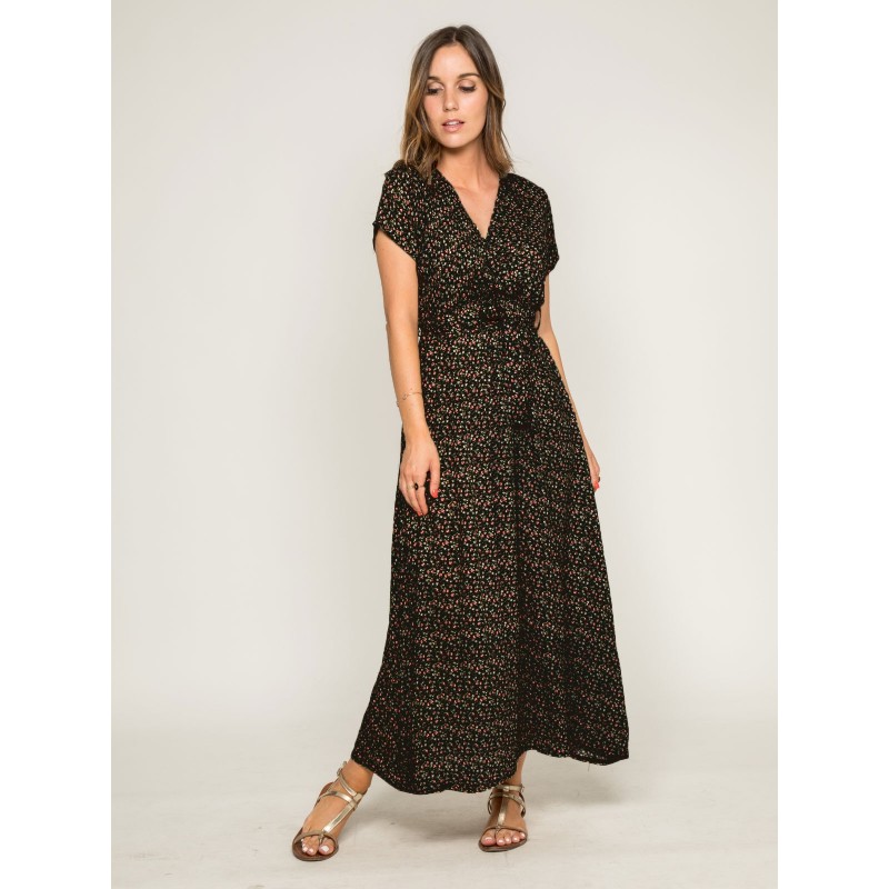 Cette longue robe Dona Lisa au motif floral incarne le style bohème et vintage à adopter cette saison. Son imprimé fleuri réparti sur l'ensemble, semi-transparent, son encolure cache-cœur et ses courtes manches confèrent un esprit romantique à la pièce. Selon vos envies, vous pourrez accorder cette robe longue d'été aux couleurs vitaminées avec une veste en jean ou un perfecto en cuir.