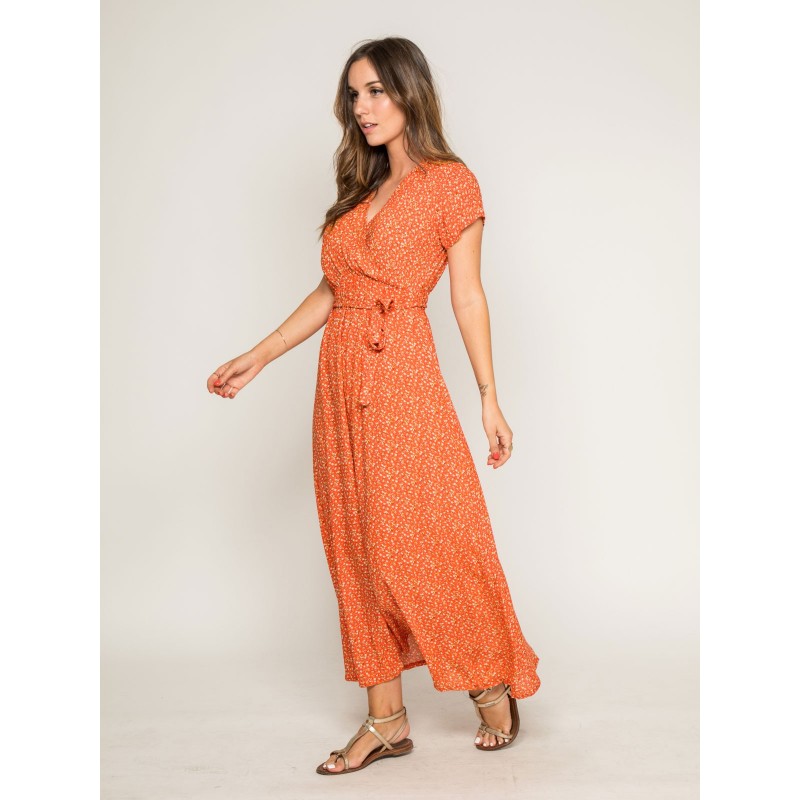 Cette longue robe Dona Lisa au motif floral incarne le style bohème et vintage à adopter cette saison. Son imprimé fleuri réparti sur l'ensemble, semi-transparent, son encolure cache-cœur et ses courtes manches confèrent un esprit romantique à la pièce. Selon vos envies, vous pourrez accorder cette robe longue d'été aux couleurs vitaminées avec une veste en jean ou un perfecto en cuir.