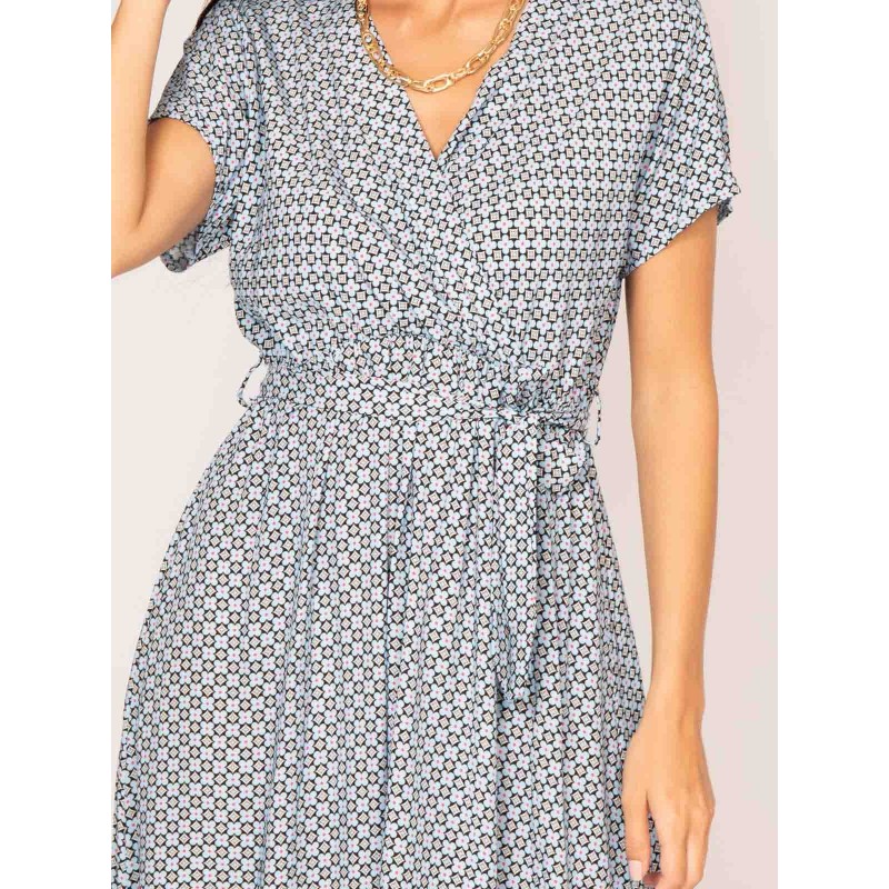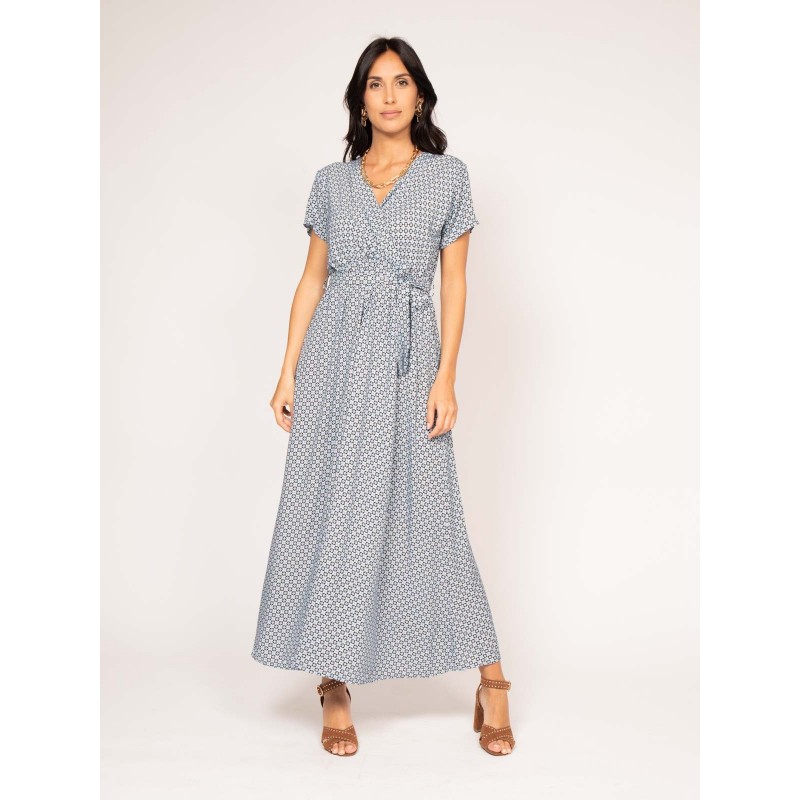 Détails produit Longueur: maxi Manches courtes Col cache-cœur Ceinture à passants Ruban assorti à nouer à la taille Coupe droite évasée Motifs Composition et entretien 100% polyester Lavage en machine à 30°... En savoir plus >