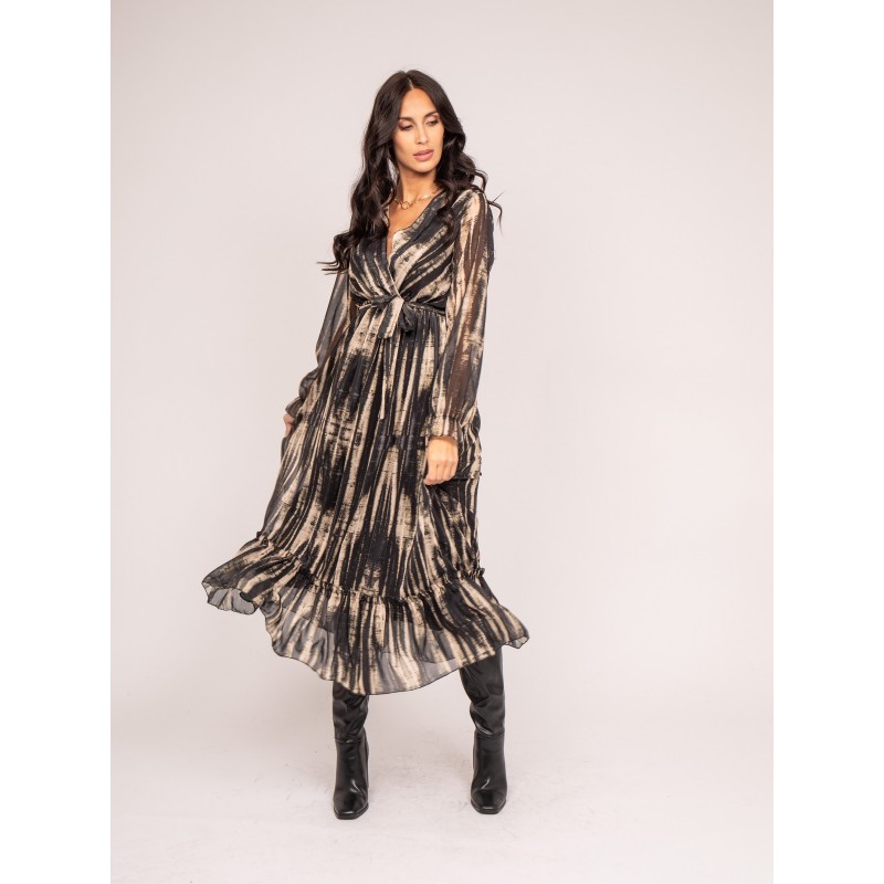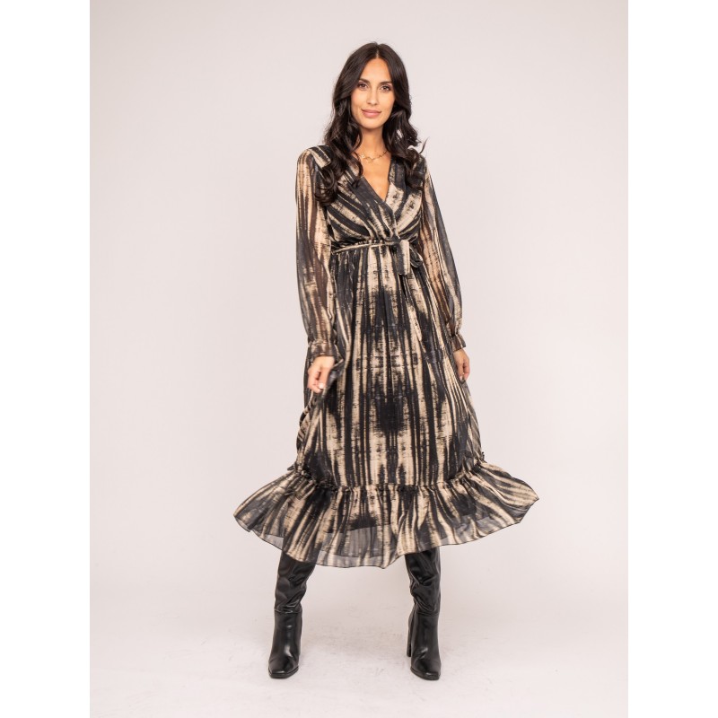 Cette robe imprimée Dona Lisa reprend l'un des modèles indispensables de la saison, rehaussée d'un imprimé lumineux. La coupe portefeuille en haut est éclairée d'un motif très féminin, créant un effet de contraste audacieux. Marquez votre taille en portant cette robe avec sa ceinture assortie nouée, un blouson en cuir et des bottines.