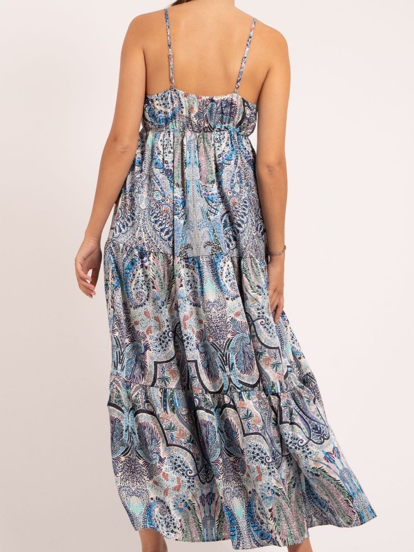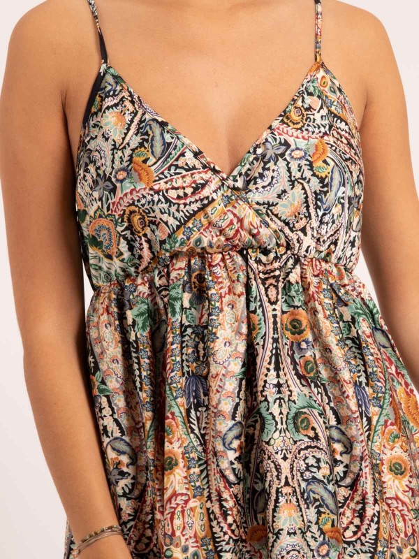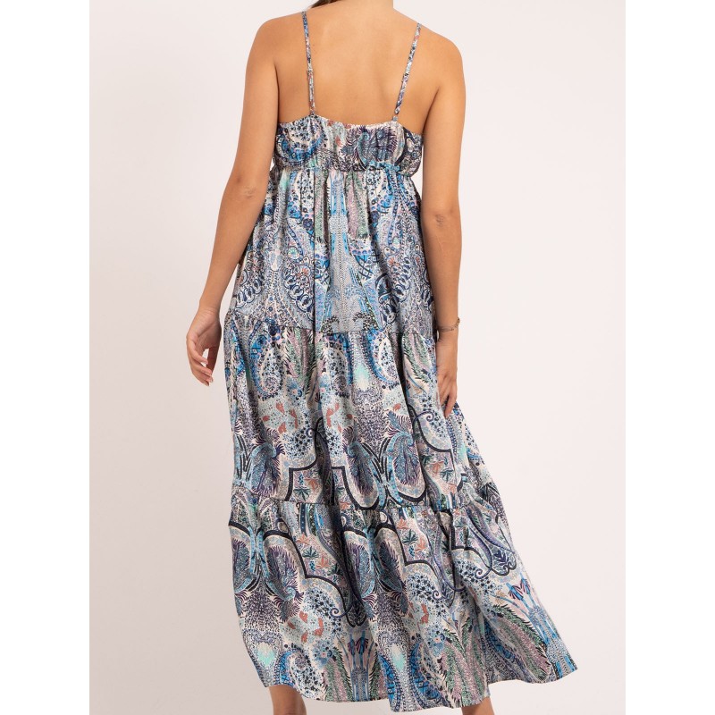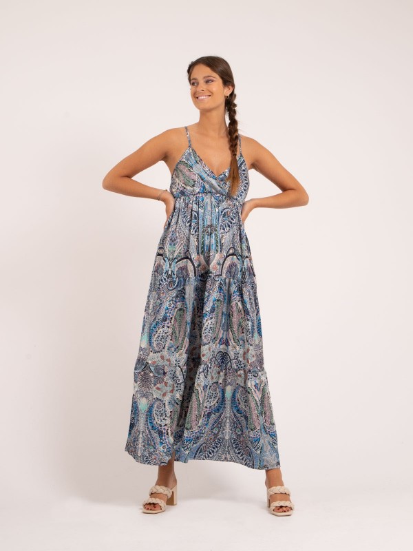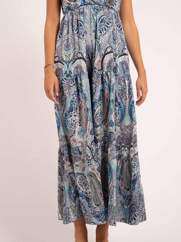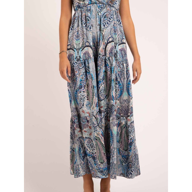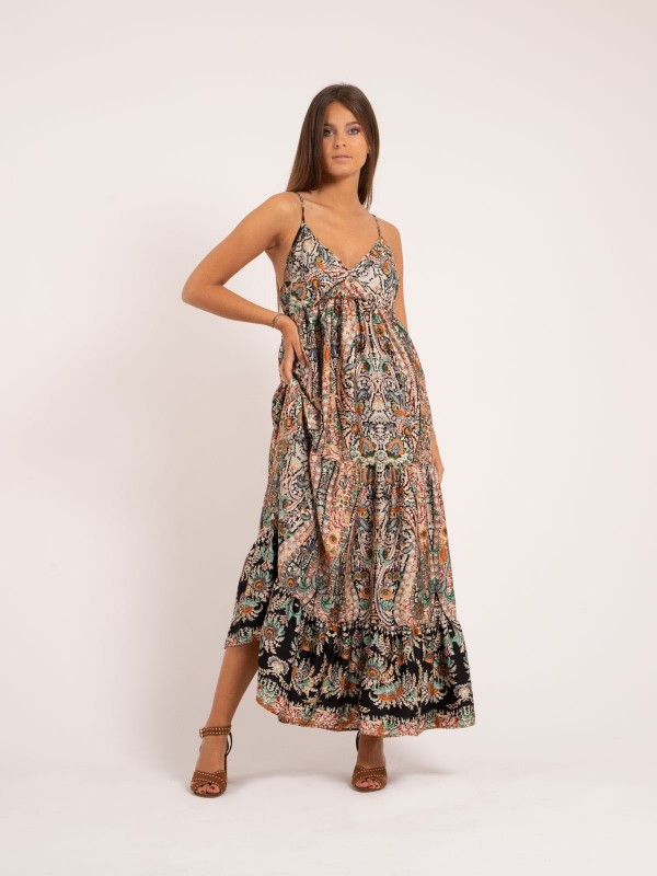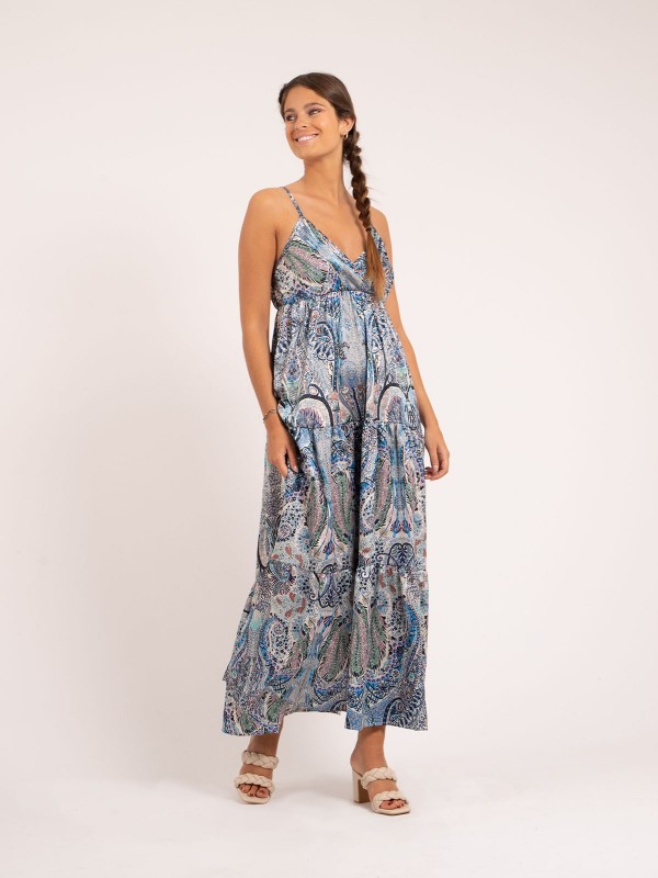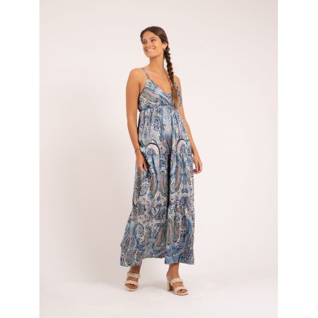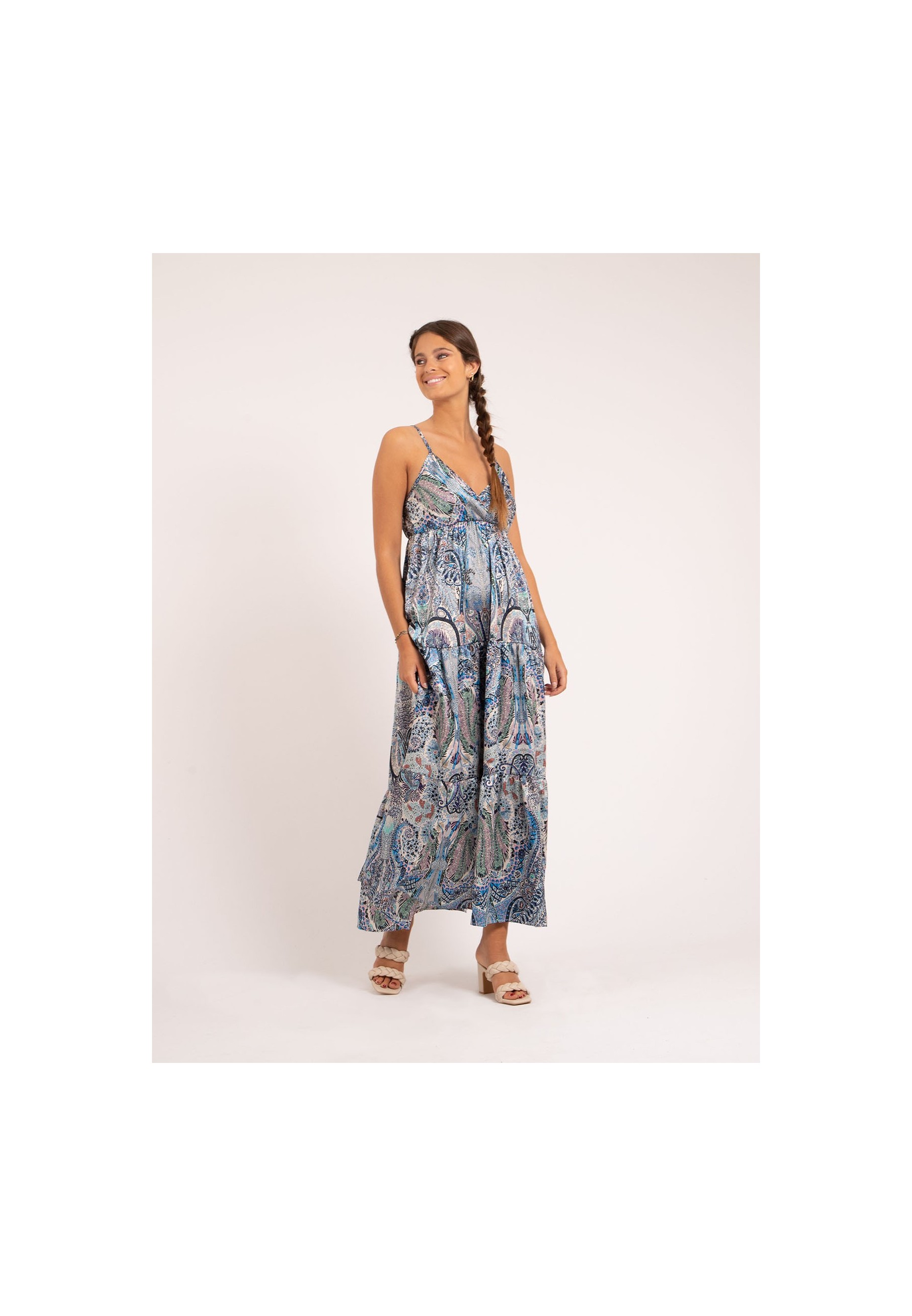 Avec cette robe longue imprimée Dona Lisa, vous adopterez une pièce pleine de charme. Parfaite pour la belle saison, elle met la silhouette en valeur grâce à une encolure cache-cœur, des épaules dénudées et la taille marquée par un élastique sous la poitrine, façon empire. L'ensemble revêt une nuance profonde, éclairée par de petits motifs vintages en all-over. Laissez cette robe longue parler pour vous avec un gilet long, un collier doré et une paire de sandales.
