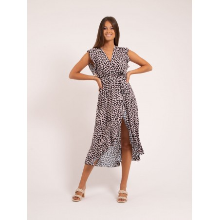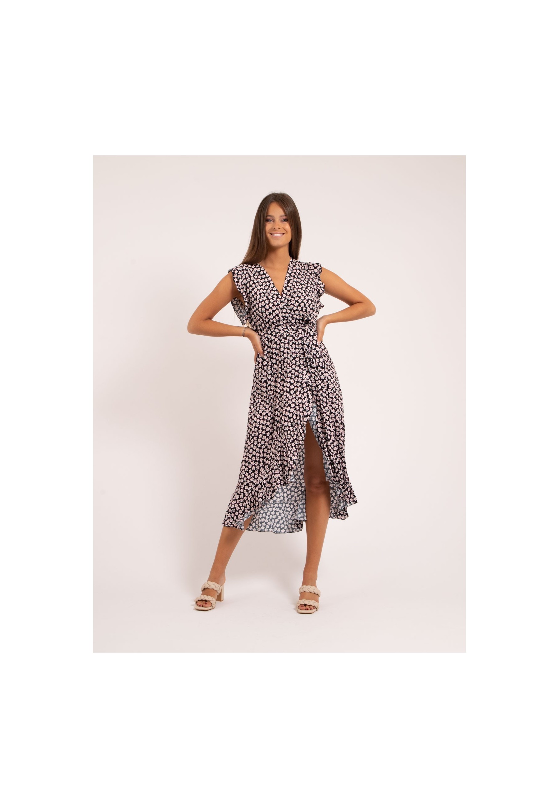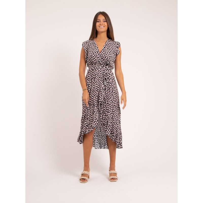 Cette robe longue Dona Lisa apportera une dose de fraîcheur dans votre dressing. Sa coupe portefeuille revisite notre encolure en pointe intemporelle, qui met en valeur de nombreuses silhouettes. L'ensemble est rehaussé de petites fleurs rétro aux tons contrastés, déclinées en all-over sur le modèle. Harmonisez cette robe cache-cœur avec une paire de sandales pour un look féminin et tendance en toute simplicité.