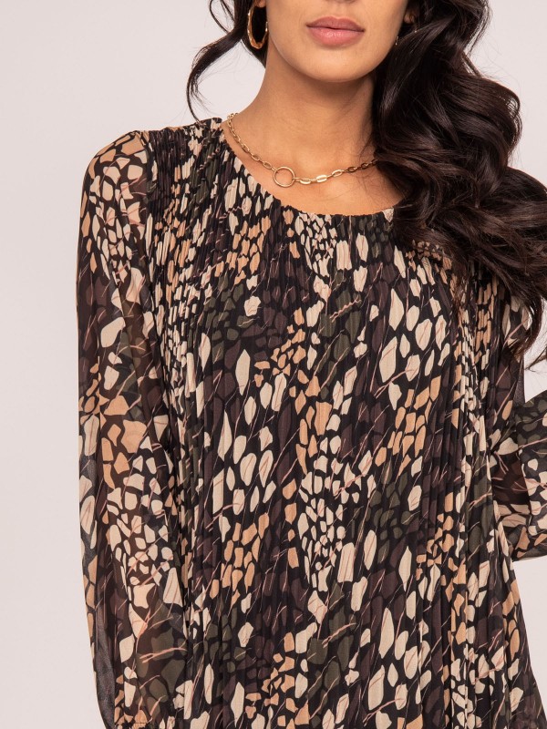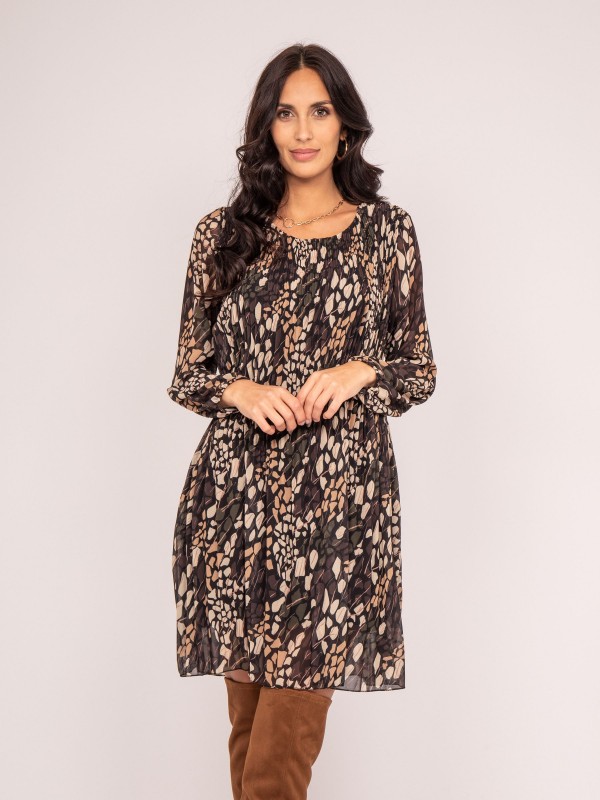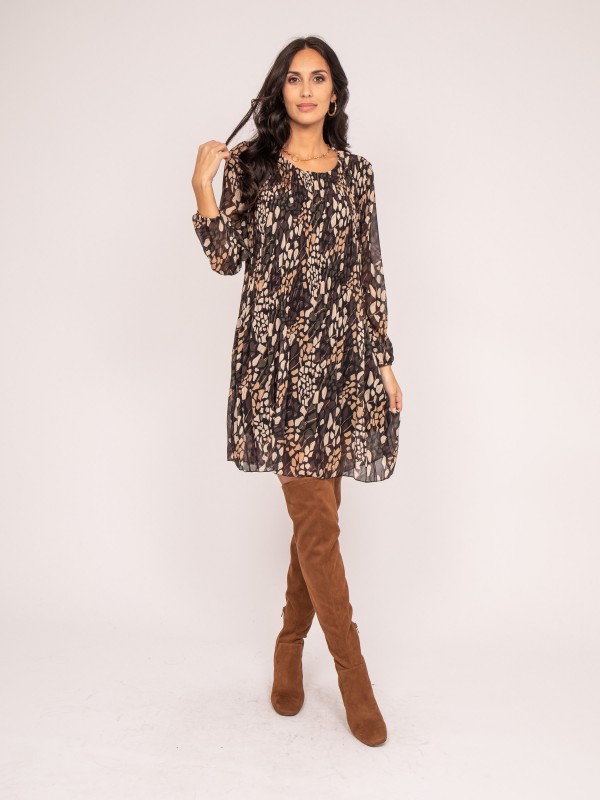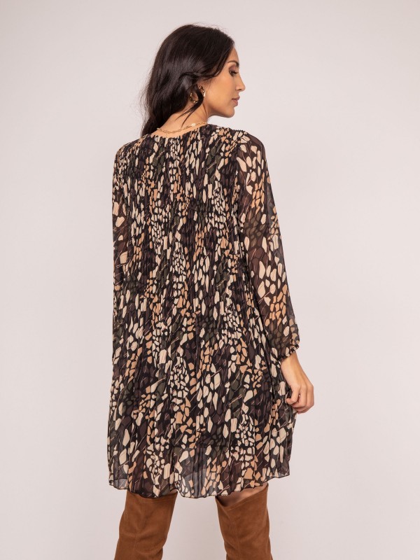 Détails produit Manches longues Large col rond Longueur: mini Coupe droite Motifs sur l'ensemble Tissu fluide Composition 100% polyester Conseils taille Le mannequin mesure 172 cm et porte l'article en... En savoir plus >