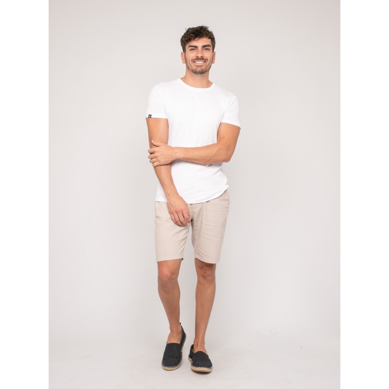 Léger et élégant, ce bermuda en lin et coton incarne le parfait équilibre entre décontraction et raffinement. Idéal pour les journées estivales, il offre un confort absolu grâce à sa matière respirante et sa coupe droite. Il se marie aisément avec une chemise légère ou un t-shirt en coton pour une allure estivale sophistiquée.