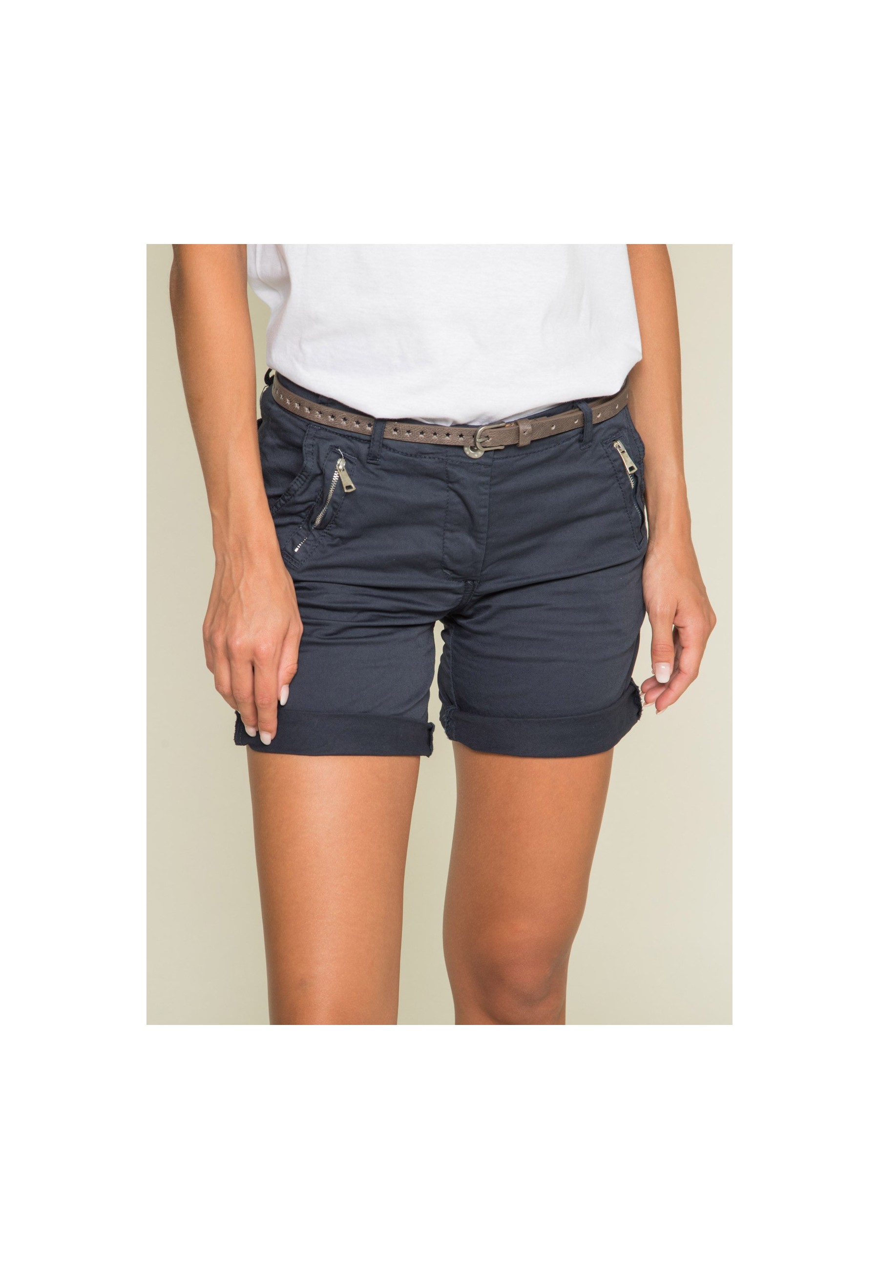 Ce short chino Dona Lisa apportera une note décontractée à vos tenues. Il se dote d'une ceinture amovible pour une touche classique féminine. Un incontournable du dressing mêlant parfaitement esprit casual et élégance, qui s'accordera parfaitement avec un top de notre collection et une paire de sandales.