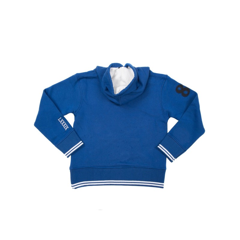 Sweat à capuche en molleton "esprit polo". Poche kangourou. Jeu de broderies signé Ritchie Polo Club sur la poitrine. Lettrage 89 brodé sur manche droite. 89 en chiffres romains brodés sur intérieur manche. Finitions bords côtes bicolores.... En savoir plus >