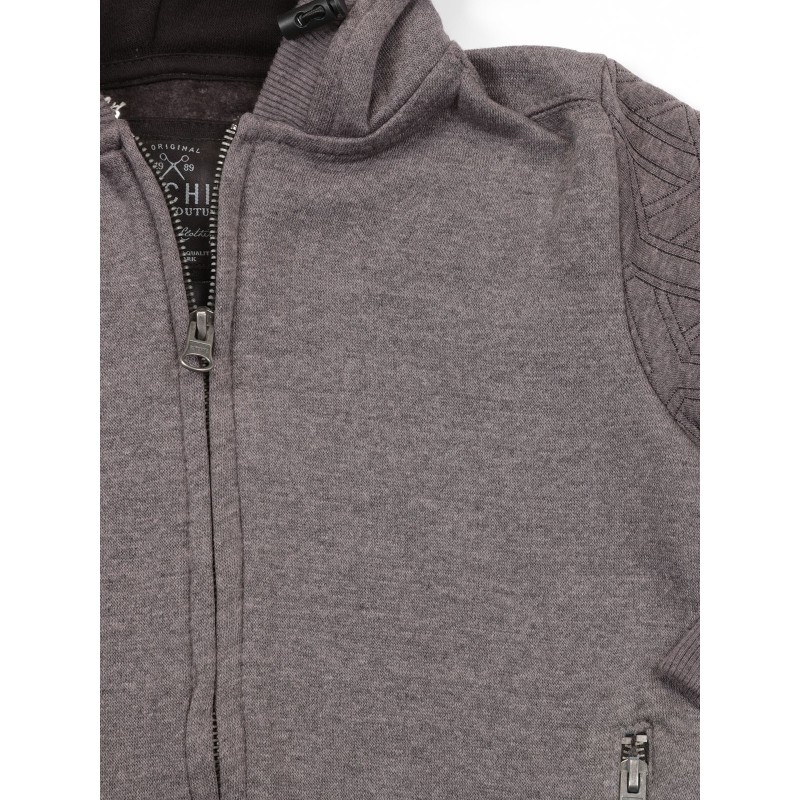 Sweat zippé à capuche en molleton. 2 poches zippées devant. Manches en molleton matelassé. 1 poche zippée sur manche droite. Finitions bords côtes. 65% coton, 35% polyester. Lavage en machine à 30°.