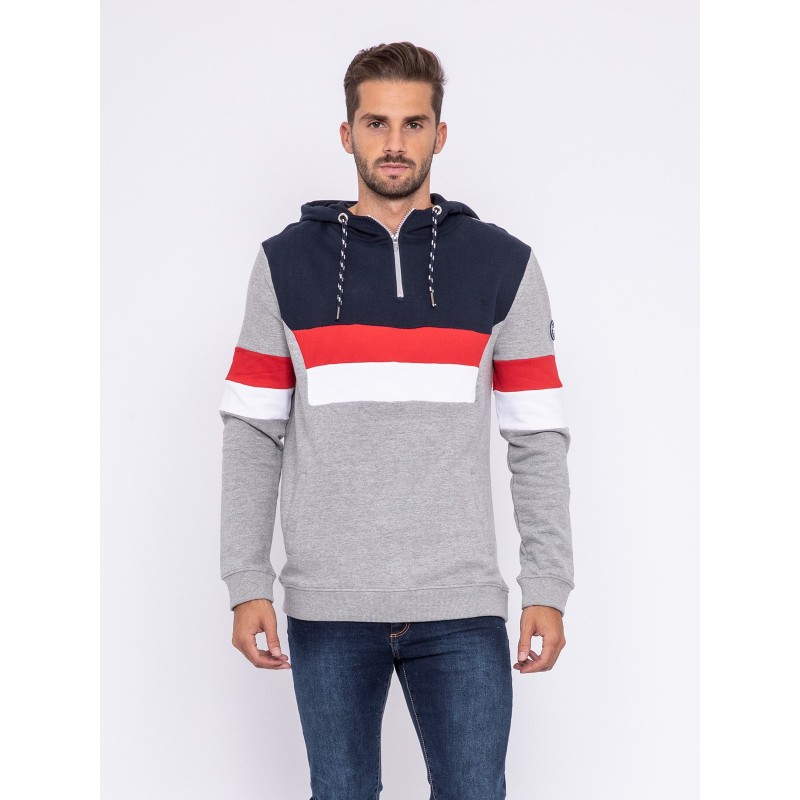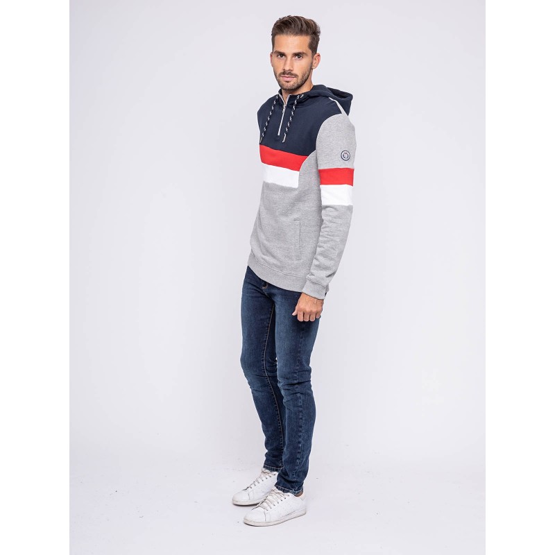 Détails produits Manches longues A capuche, cordon de serrage Fermeture zippée Bandes verticales contrastantes Bords côtes base et poignets  Coupe droite   Composition et entretien 100% coton Lavage en machine à 30°... En savoir plus >