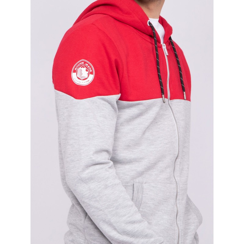 Détails produit Molleton Manches longues A capuche, cordon de serrage Fermeture zippée Bicolore Écusson Ritchie Jeans sur manche droite Bords-côtes base et poignets 2 poches côtés "kangourou" Etiquette logo Ritchie Jeans à la... En savoir plus >