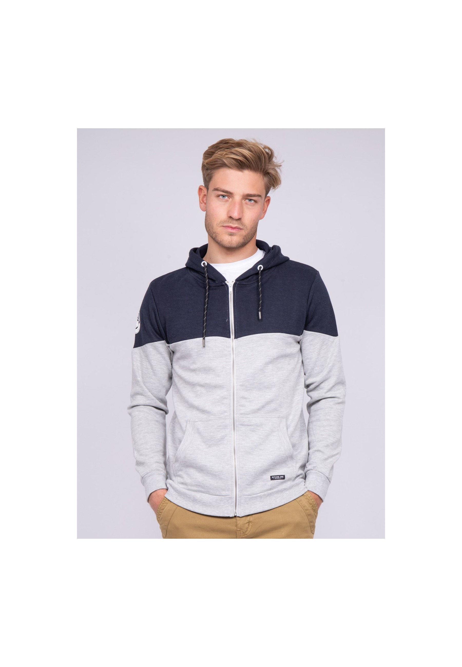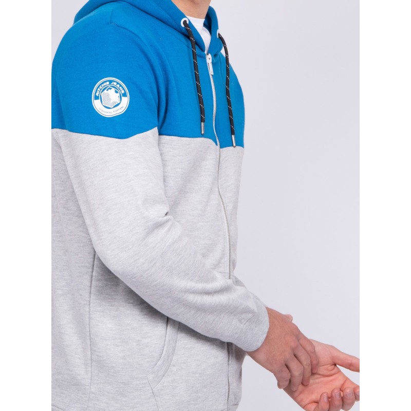 Détails produit Molleton Manches longues A capuche, cordon de serrage Fermeture zippée Bicolore Écusson Ritchie Jeans sur manche droite Bords-côtes base et poignets 2 poches côtés "kangourou" Etiquette logo Ritchie Jeans à la... En savoir plus >