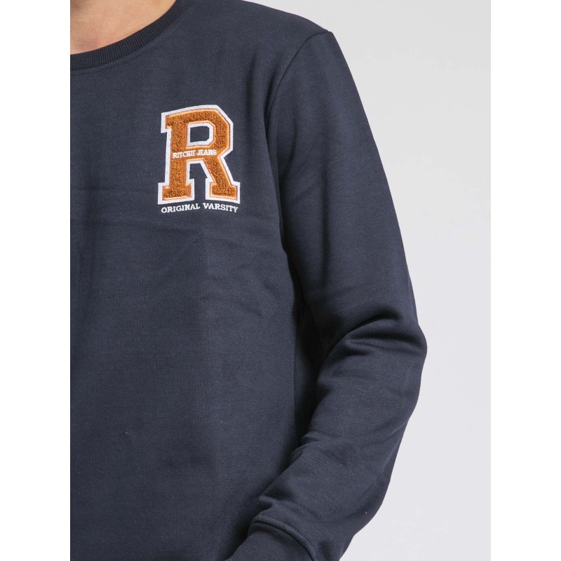 Ce sweatshirt Ritchie Jeans opte pour une coupe classique, avec manches longues et col rond, et de larges bords-côtes. Vous pourrez apprécier sa broderie signée Ritchie Jeans et son porter très confortable qui confèrent de l'élégance à cette pièce sportive. Un sweat idéal sur un jean.