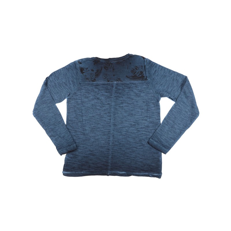 T-shirt imprimé, manches longues, col V finition à cru, en jersey pur coton. Petite poche fantaisie coté cur. Finitions droites aux manches et à la base. 100% coton. Lavage en machine à 30°.