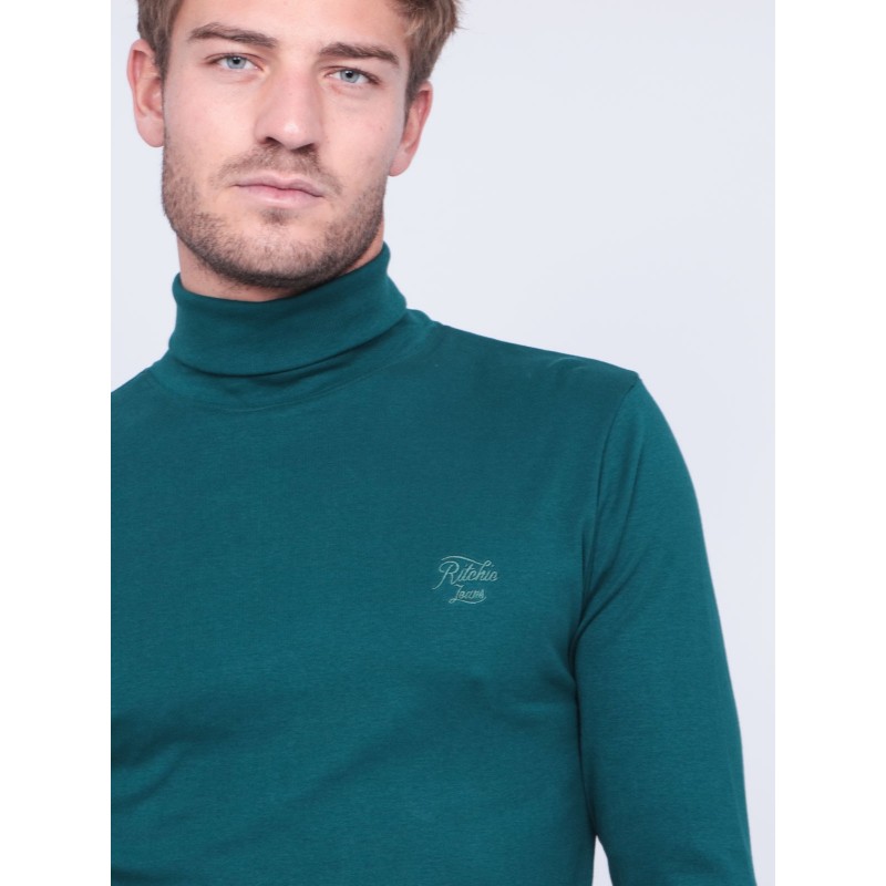 Sous-pull col roulé en maille 100% coton extensible. Ce T-shirt col roulé est très facile à porter et très agréable au contact de la peau.   Détails produit Finition légèrement élastiquée au col et aux poignets Broderie Ritchie... En savoir plus >