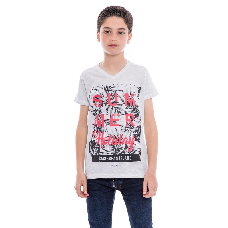 Ce tee shirt à manches courtes est confectionné dans un coton flammé léger pour un porter fluide et confortable. Il se distingue par sa sérigraphie "SUMMER Holidays" florale ultratendance. Associez ce t-shirt garçon à un bermuda de notre collection pour un style estival moderne.