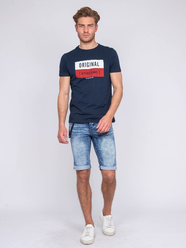 Détails produit Manches courtes Col rond Motif imprimé devant Effet chiné Coupe droite Composition et entretien 88% coton, 12% polyester Lavage en machine à 30° Conseil taille Le mannequin mesure 1,85 m et... En savoir plus >