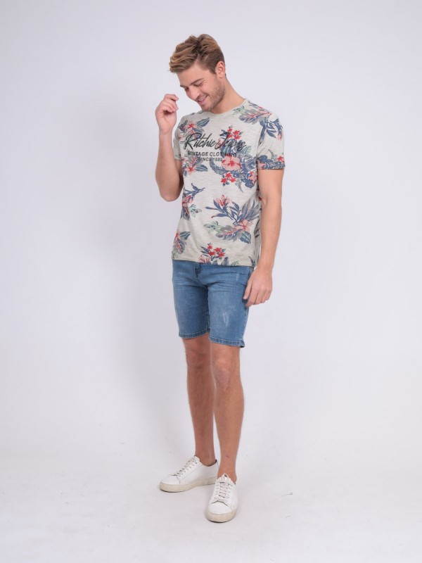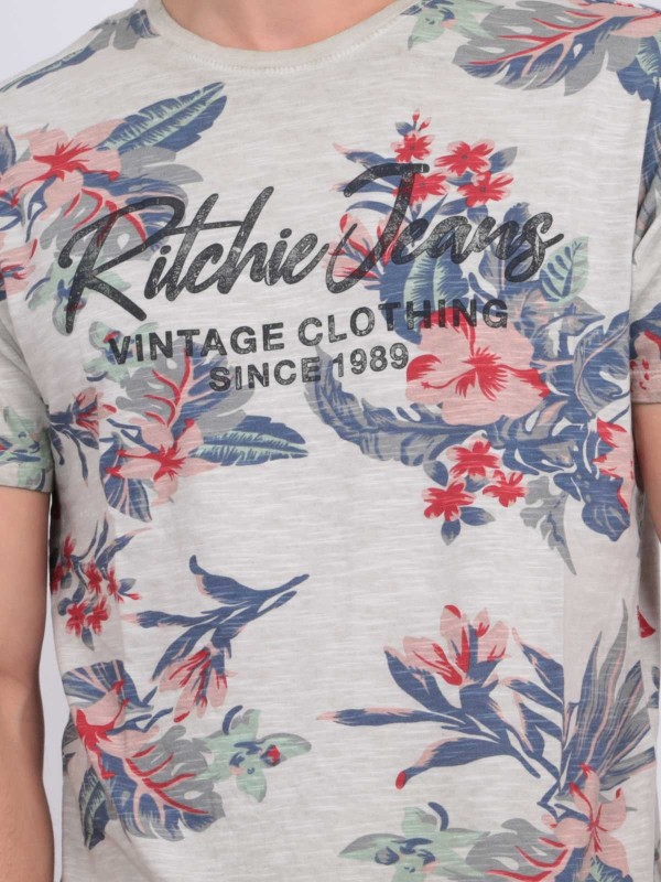 Ce T-shirt signé Ritchie Jeans est confectionné en pur coton flammé léger et confortable, rehaussé d'un motif floral et d'une inscription à l'esprit vintage sur le devant. Associez ce tee shirt à un bermuda pour un look estival tendance.