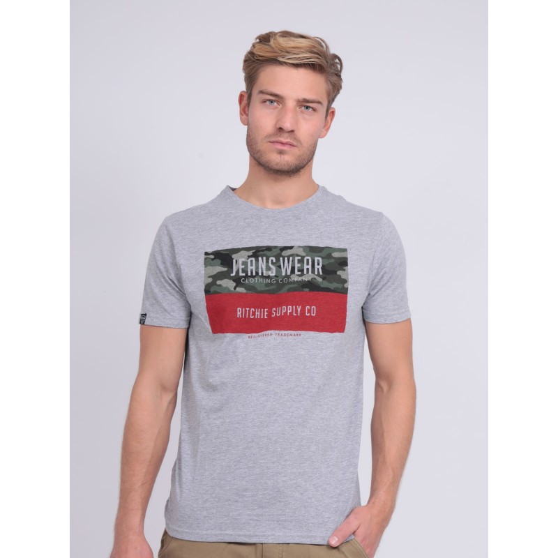 Ce tee-shirt Ritchie Jeans à manches courtes est confectionné dans un coton léger pour un porter fluide et confortable. Vous pourrez apprécier son imprimé signé Ritchie Jeans sur fond au motif army pile dans la tendance.