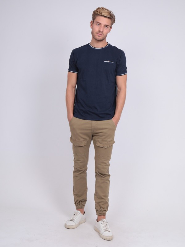 Ce tee shirt col rond Ritchie Jeans en pur coton confortable se distingue par ses finitions en bords côtes à rayures contrastées au col et aux manches. Ce tee shirt tendance s'accordera parfaitement à votre dressing de saison.