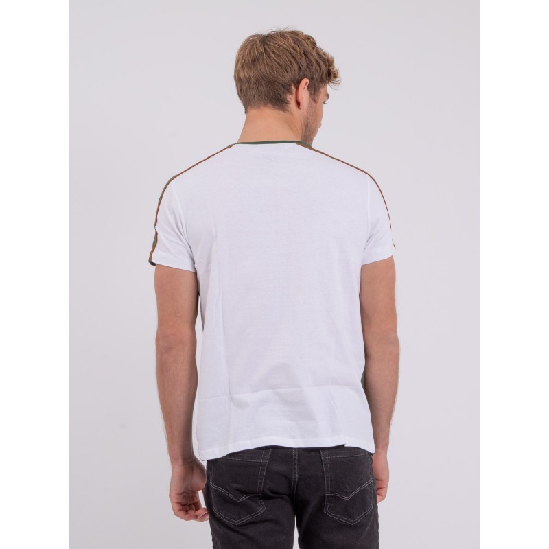 Ce tee shirt col rond Ritchie Jeans en coton léger et confortable se distingue par son écusson signature contrastant sur la poitrine, sur fond tricolore graphique. Ce T-shirt tendance s'accordera parfaitement à votre dressing de saison.