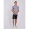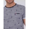 Ritchie Jeans vous propose un basique de la garde-robe masculine revisité, avec un tee shirt manches courtes col rond en pur coton. Sa coupe classique en fait une pièce confortable et sobre. Les détails subtils qui font la différence : les manches retroussées contrastantes, la fausse poche sur la poitrine et le petit motif contrastant fashion en all-over, sur fond rayé. De quoi l'associer parfaitement à un jean de notre collection, pour un style masculin tendance.