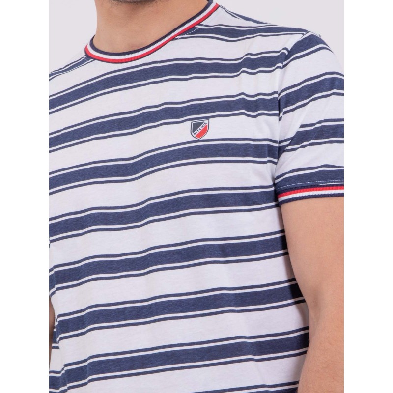 Ritchie Jeans vous propose un basique du vestiaire masculin, avec un tee shirt manches courtes rayé en pur coton. Sa coupe classique en fait une pièce confortable et sobre. Les détails subtils qui font la différence : l'écusson Ritchie cousu sur la poitrine. De quoi l'associer parfaitement à un bermuda ou un pantalon chino décontracté.