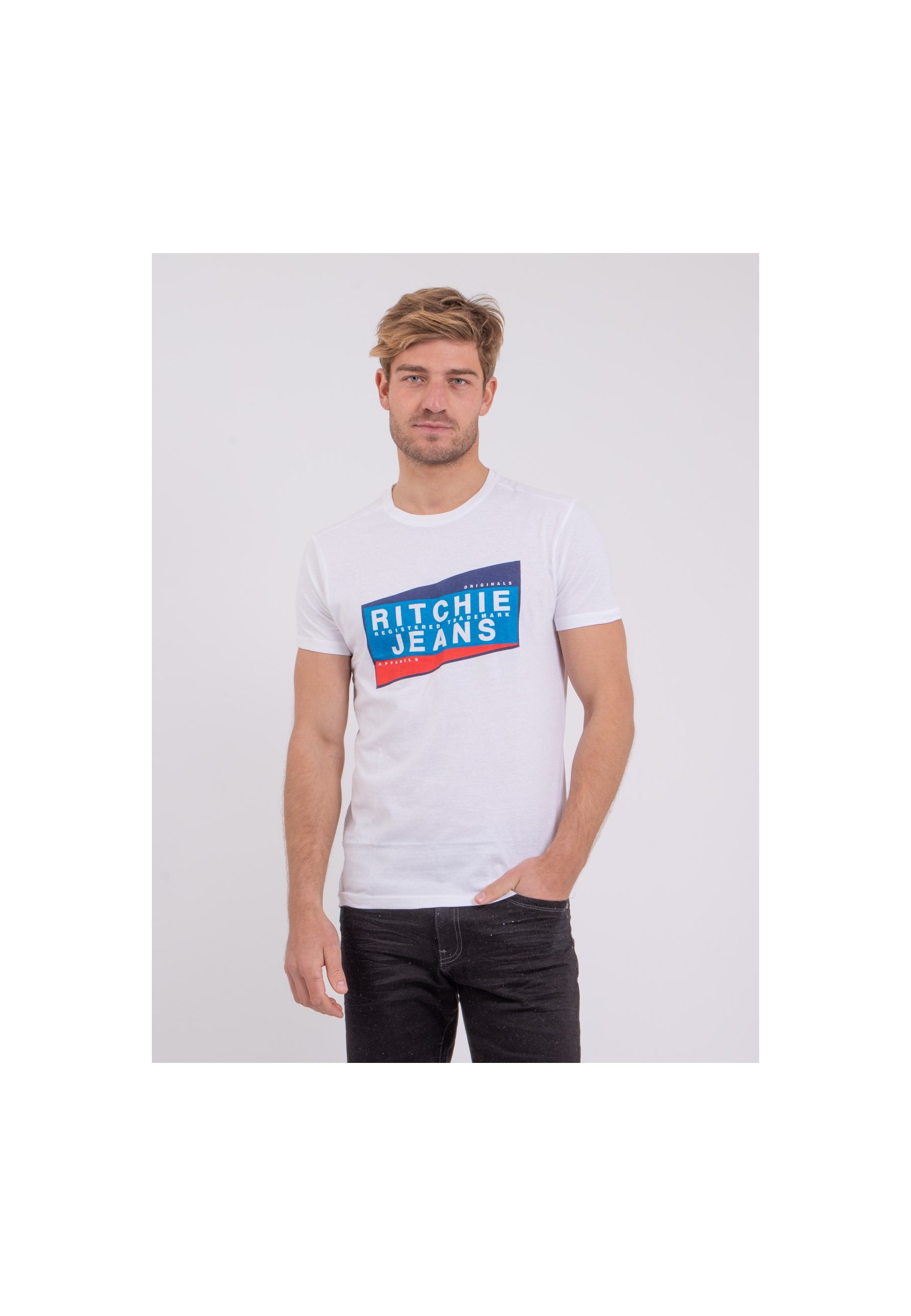 Ce tee shirt col rond Ritchie Jeans en coton léger et confortable se distingue par son inscription imprimée signature sur le devant, sur fond contrasté qui lui confère une touche graphique. Ce T-shirt au coloris lumineux s'accordera parfaitement à votre dressing casual chic de saison.