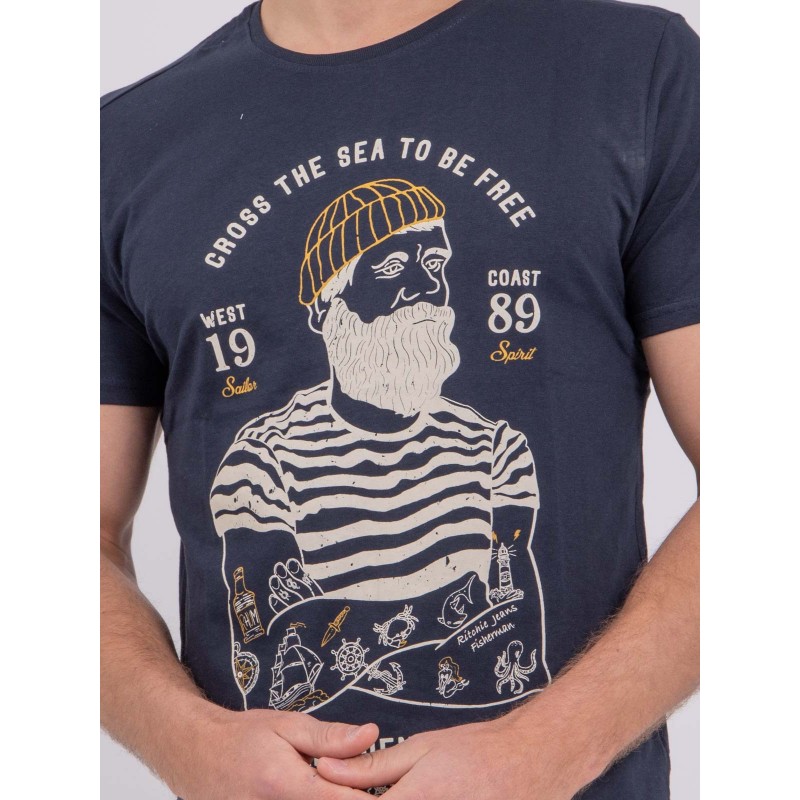 Décliné dans une coupe décontractée, ce T-shirt en coton flammé Ritchie Jeans s'agrémente de manches courtes, d'un col rond et de finitions droites aux extrémités. Un imprimé contrastant s'invite sur le devant dans un style biker. Changez des modèles unis en accordant ce tee-shirt à motifs avec un jean et une paire de bottines.
