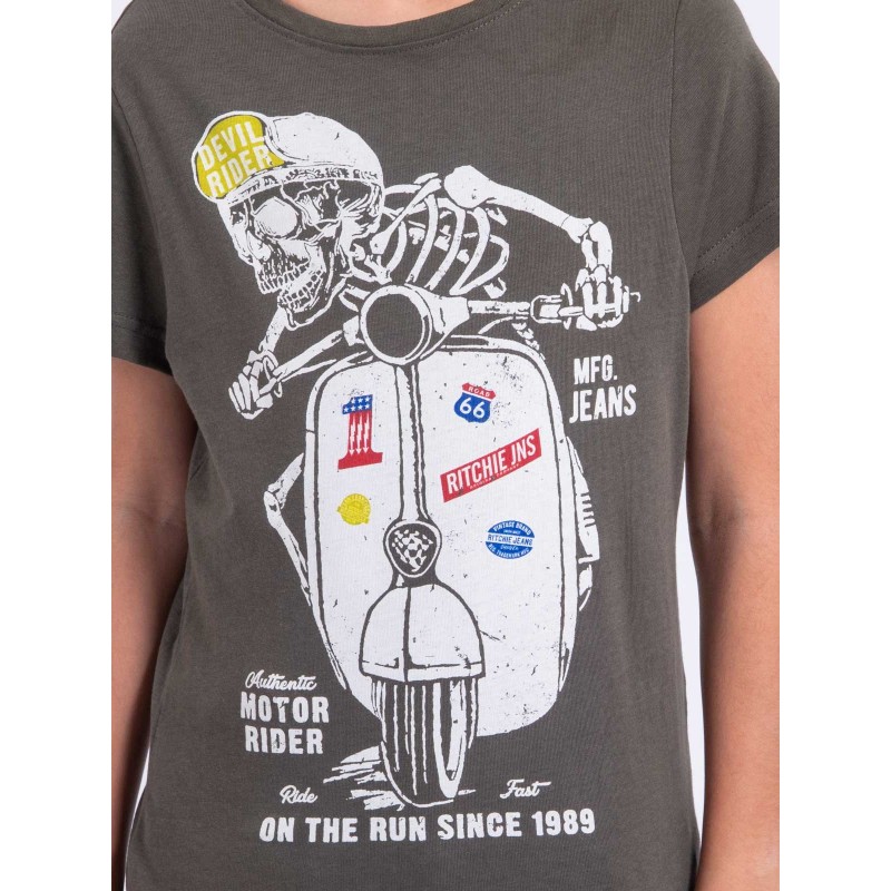 Décliné dans une coupe décontractée, ce T-shirt en pur coton Ritchie Jeans s'agrémente de manches courtes, d'un col rond et de finitions droites aux extrémités. Un imprimé contrastant s'invite sur le devant dans un style biker. Changez des modèles unis en accordant ce tee-shirt à motifs avec un jean et une paire de baskets.