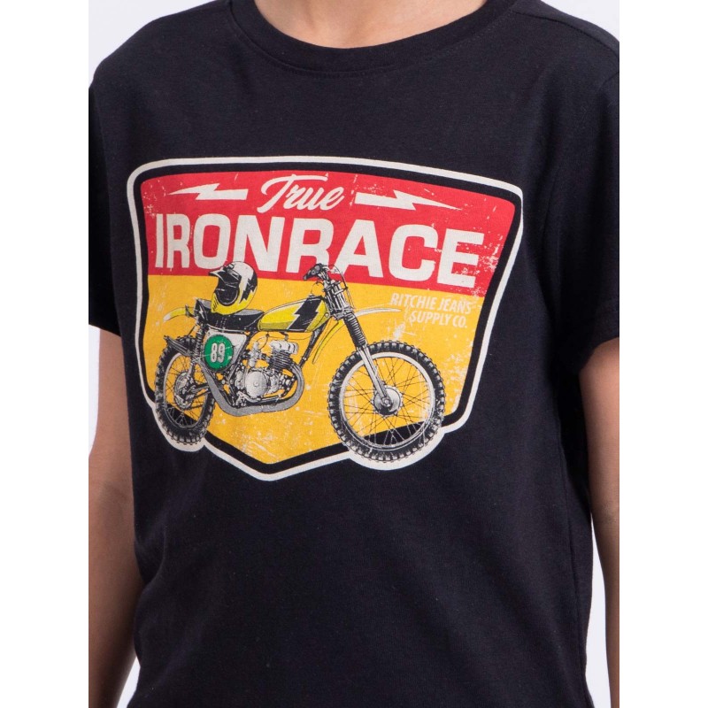 Pour ce t-shirt en coton Ritchie Jeans, notre Maison s'inspire directement de l'univers biker. Imprimée sur la poitrine, une illustration vintage contrastée représente une moto sur fond coloré. Vous pourrez adopter un style casual en portant ce t-shirt pour garçon avec un pantalon de ville en toile et une paire de tennis blanches.