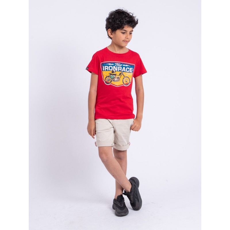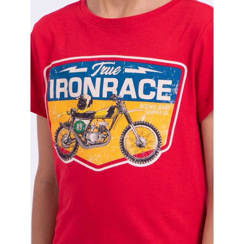 Pour ce t-shirt en coton Ritchie Jeans, notre Maison s'inspire directement de l'univers biker. Imprimée sur la poitrine, une illustration vintage contrastée représente une moto sur fond coloré. Vous pourrez adopter un style casual en portant ce t-shirt pour garçon avec un pantalon de ville en toile et une paire de tennis blanches.