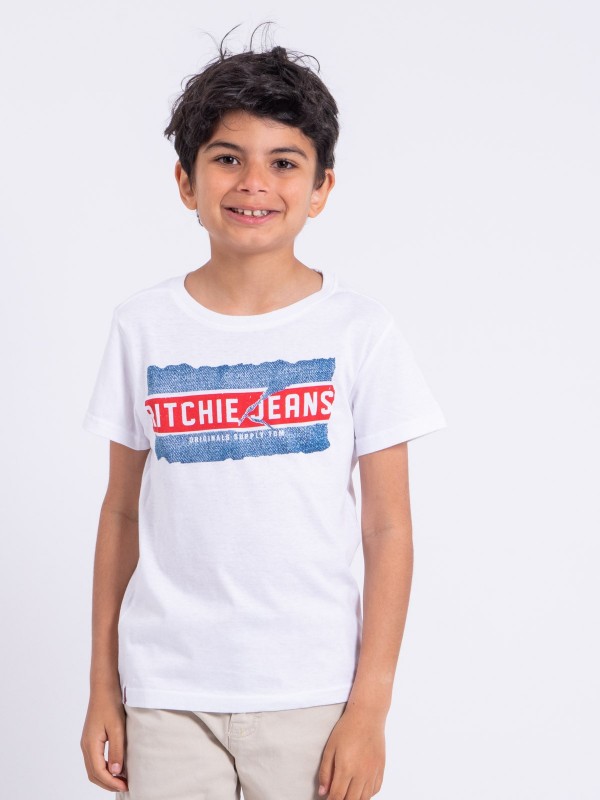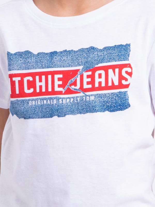 Ce tee shirt Ritchie jeans à manches courtes est confectionné dans un coton léger pour un porter fluide et confortable. Il se distingue par sa sérigraphie devant, pile dans la tendance du moment. Associez ce t-shirt garçon à une veste et un jean pour un look résolument tendance.