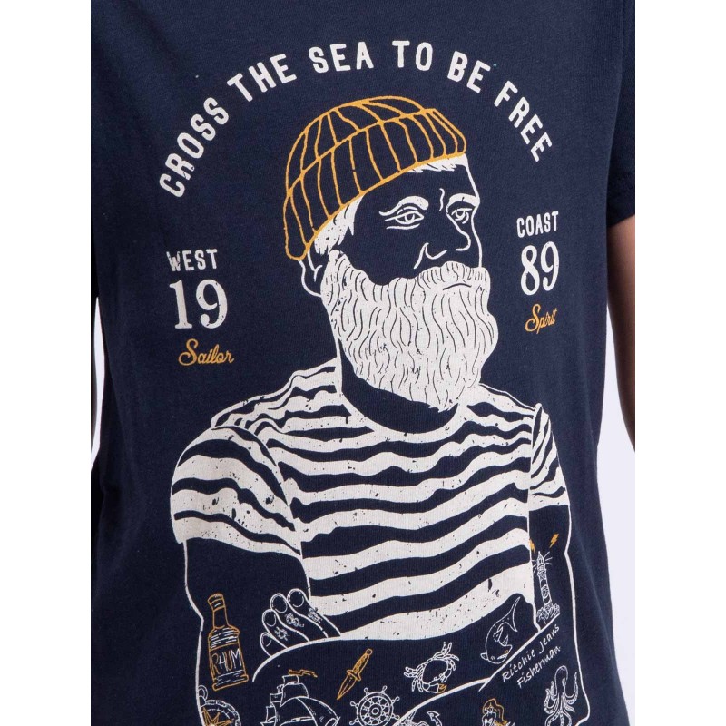 Décliné dans une coupe décontractée, ce T-shirt en coton flammé Ritchie Jeans s'agrémente de manches courtes, d'un col rond et de finitions droites aux extrémités. Un imprimé contrastant s'invite sur le devant dans un style biker. Changez des modèles unis en accordant ce tee-shirt à motifs avec un jean et une paire de bottines.