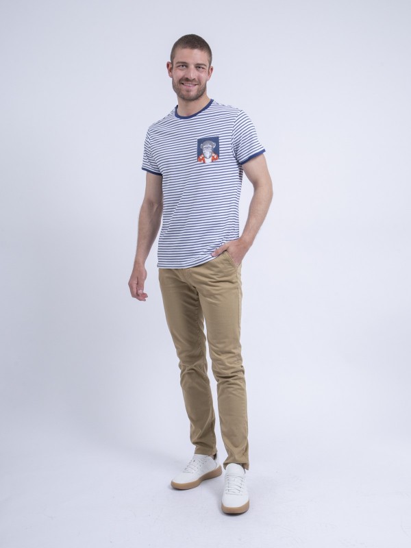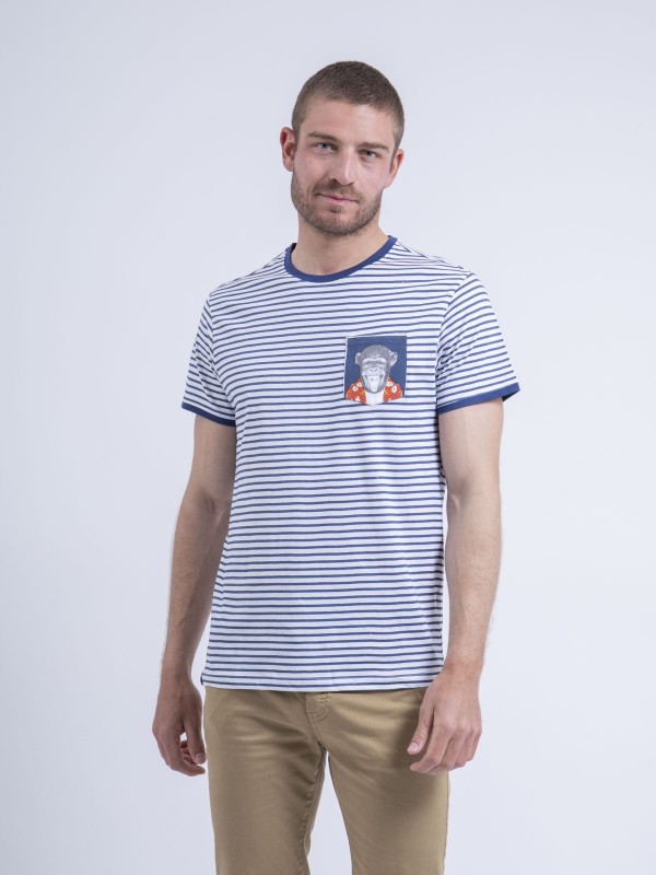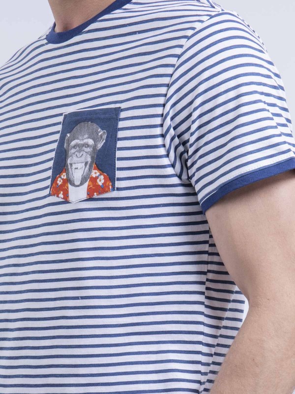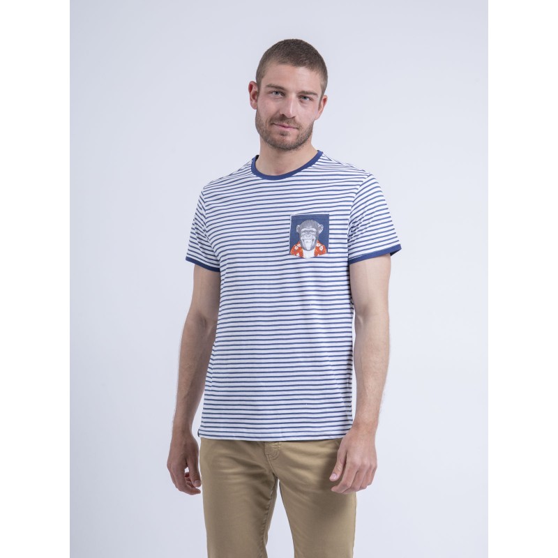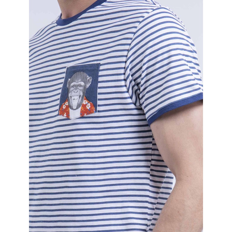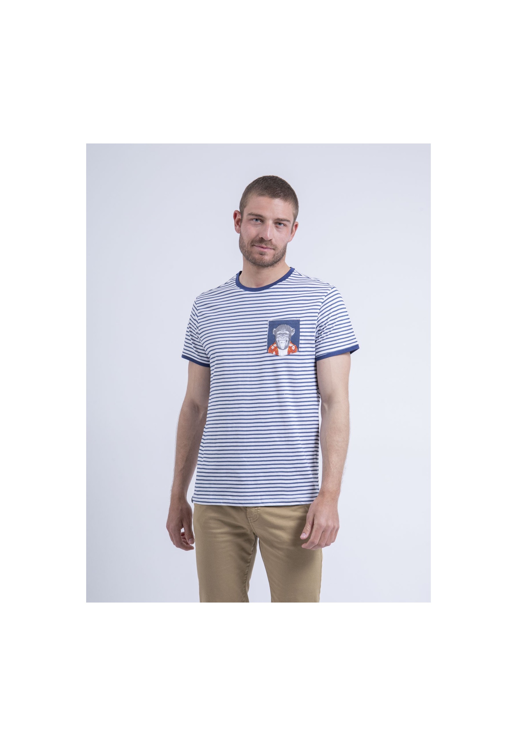 Ritchie Jeans vous propose un basique du vestiaire masculin, avec un tee shirt manches courtes rayé en pur coton. Sa coupe classique en fait une pièce confortable et sobre. Les détails subtils qui font la différence : la poche sur la poitrine, à l'imprimé singe qui apporte une touche de fun à la pièce. De quoi l'associer parfaitement à un bermuda ou un pantalon chino décontracté.