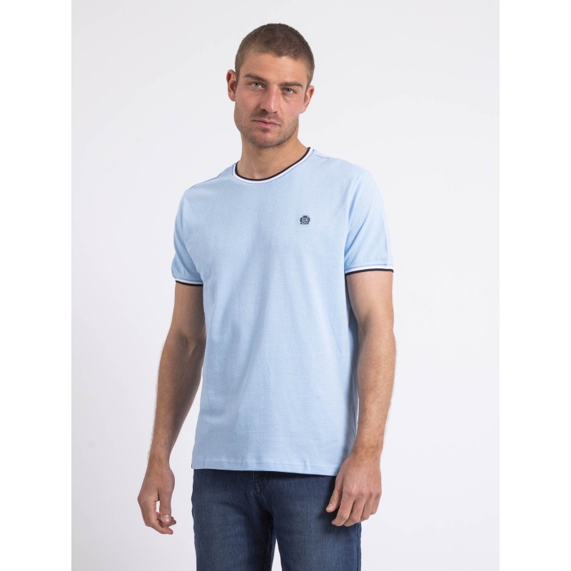 Ce tee shirt col rond Ritchie Jeans en pur coton piqué confortable se distingue par ses finitions en bords côtes à rayures contrastées au col et aux manches. Ce tee shirt tendance s'accordera parfaitement à votre dressing de saison.