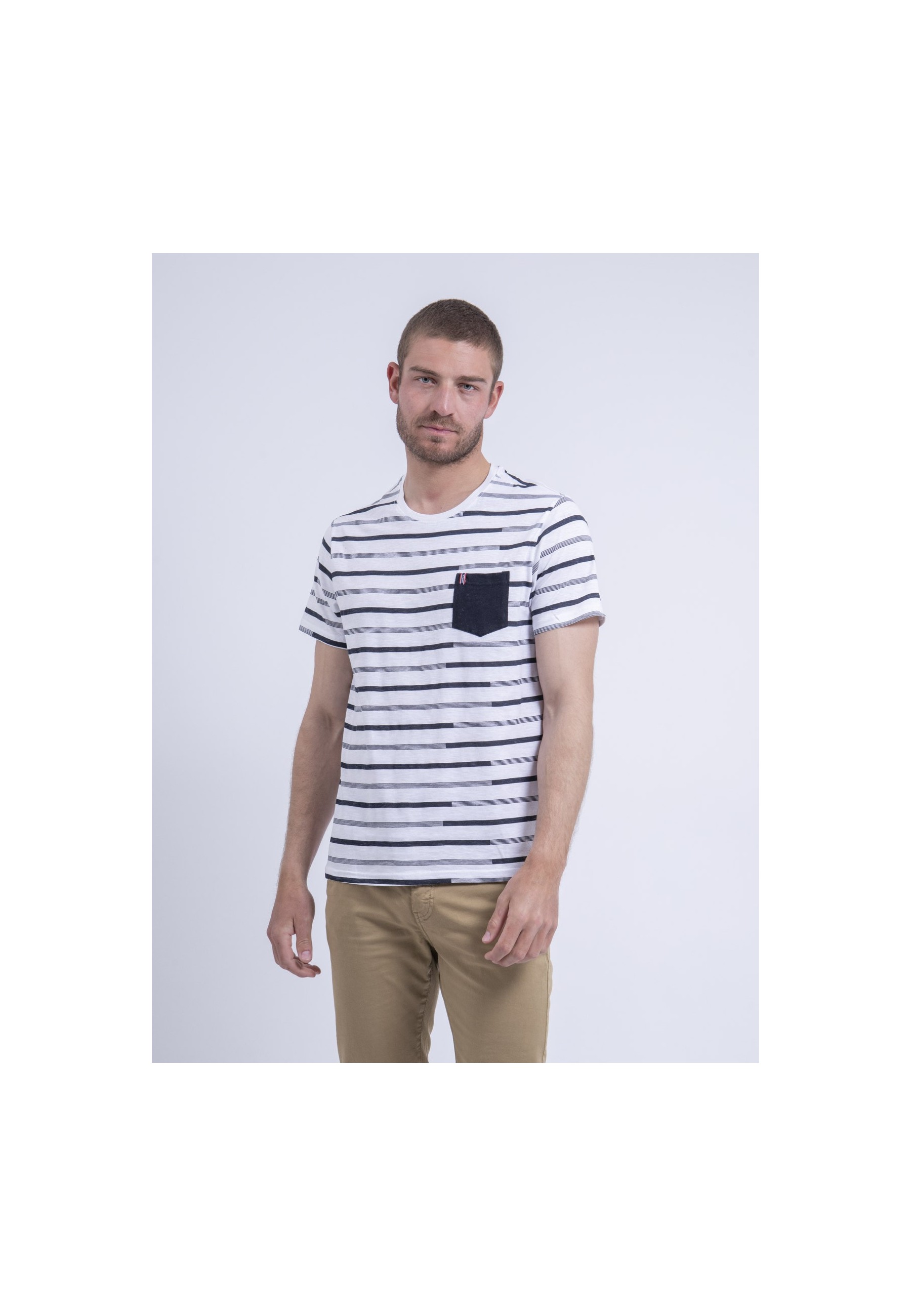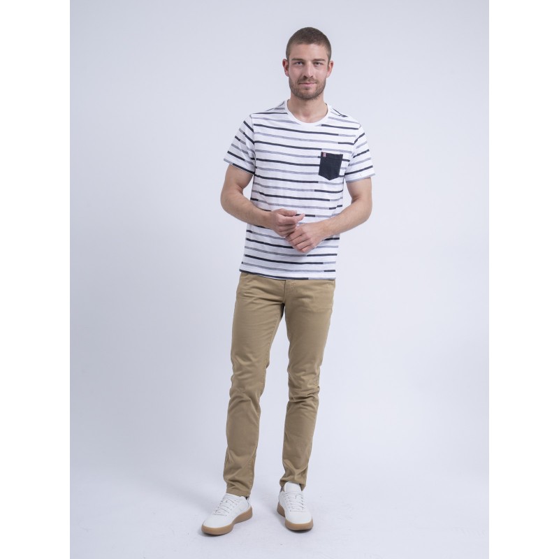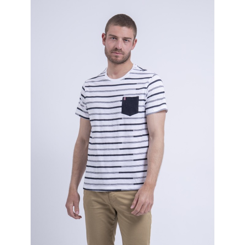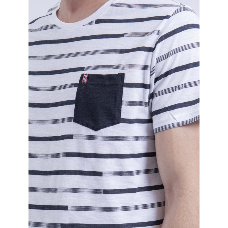 Ritchie Jeans vous propose un basique du vestiaire masculin, avec un tee shirt manches courtes rayé en pur coton. Sa coupe classique en fait une pièce confortable et sobre. Les détails subtils qui font la différence : la poche contrastante sur la poitrine. De quoi l'associer parfaitement à un bermuda ou un pantalon chino décontracté.