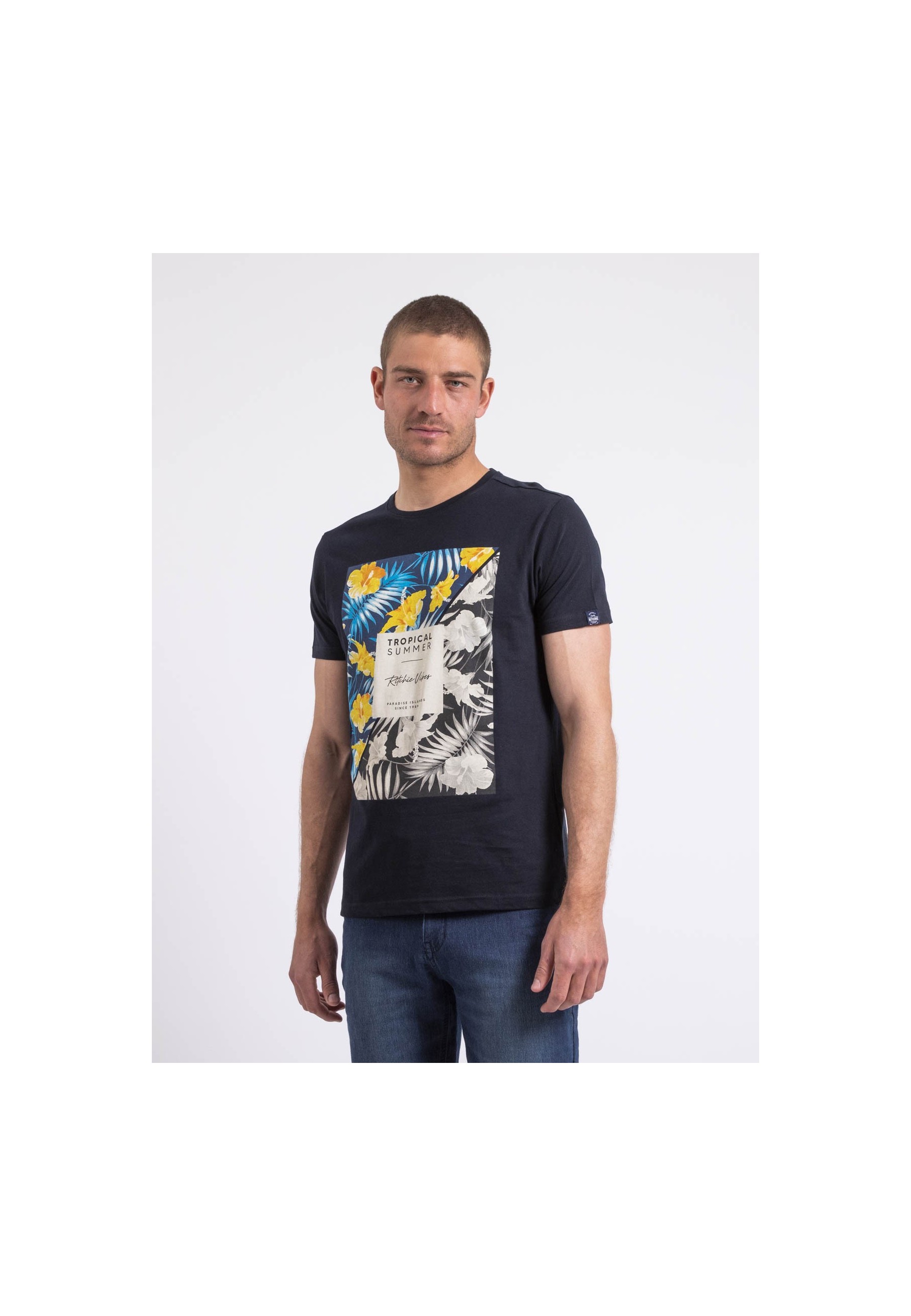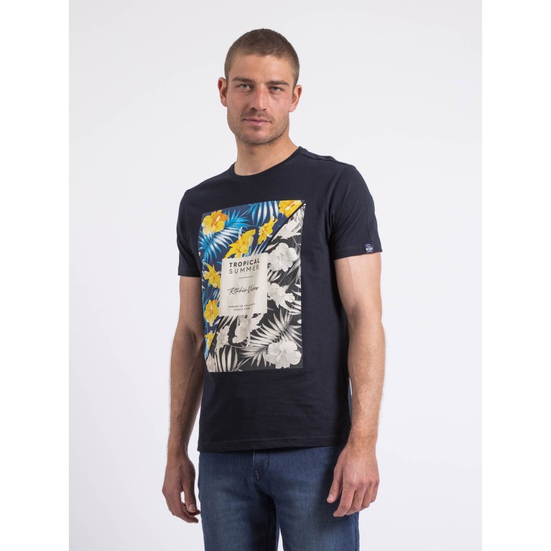 Ce tee-shirt Ritchie Jeans, conçu en coton doux, est doté de manches courtes et d'une encolure arrondie. Sa sérigraphie colorée dans le thème tropical évoque l'été. A la fois tendance et casual, ce T-shirt droit s'accordera avec un jean, un pantalon chino ou même un bas de jogging en molleton.