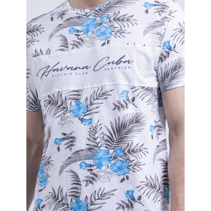 Ce T-shirt signé Ritchie Jeans est confectionné en pur coton léger et confortable. Sur fond flammé, il se pare d'un motif floral contrasté en all-over, et d'une sérigraphie "Havana Cuba" sur l'avant. Associez ce tee shirt à un bermuda pour un look estival tendance.
