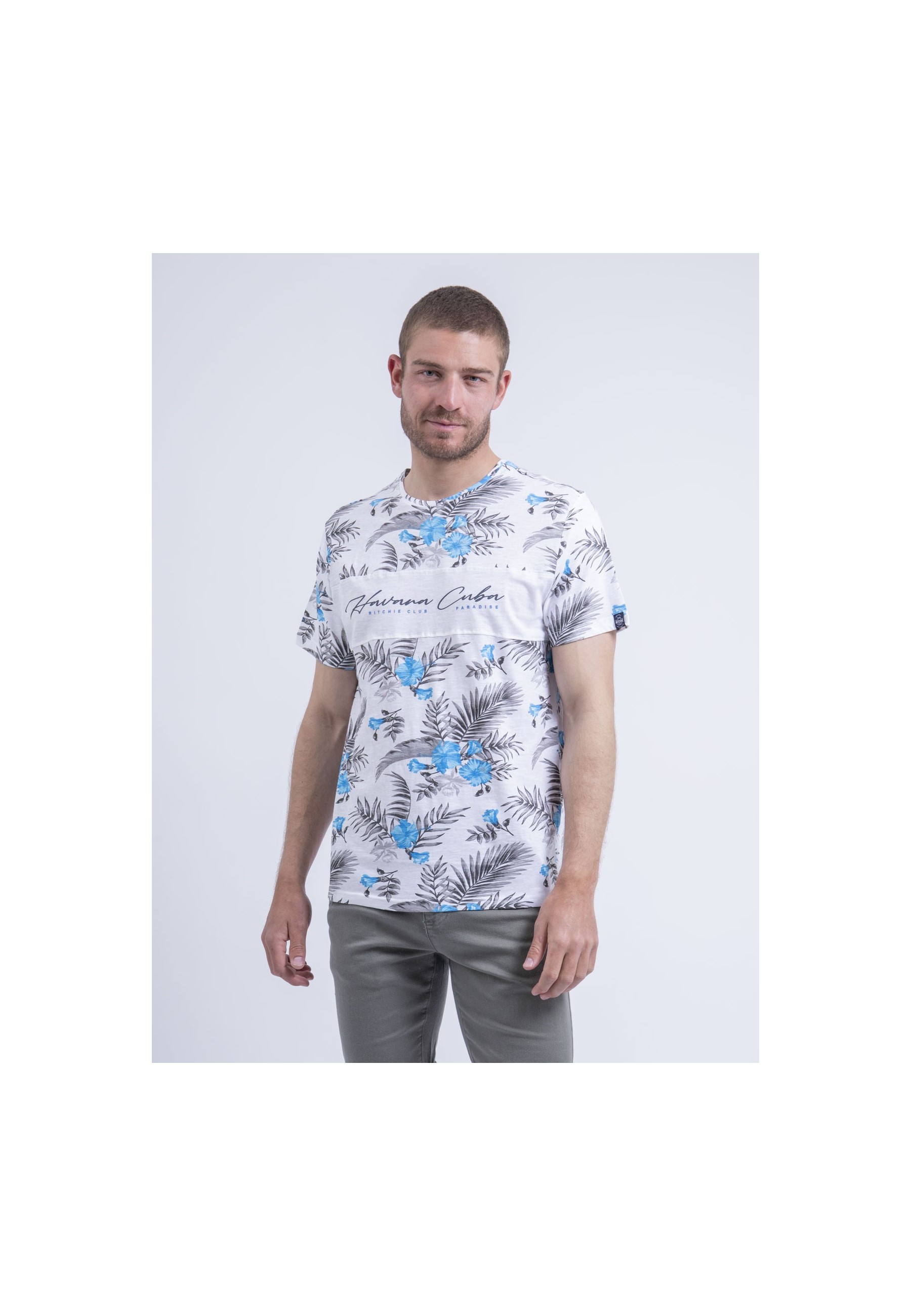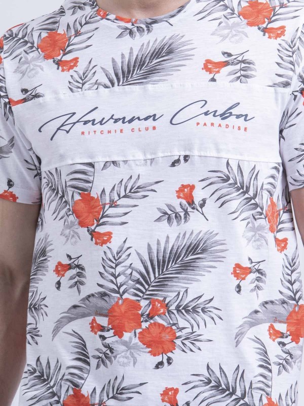 Ce T-shirt signé Ritchie Jeans est confectionné en pur coton léger et confortable. Sur fond flammé, il se pare d'un motif floral contrasté en all-over, et d'une sérigraphie "Havana Cuba" sur l'avant. Associez ce tee shirt à un bermuda pour un look estival tendance.