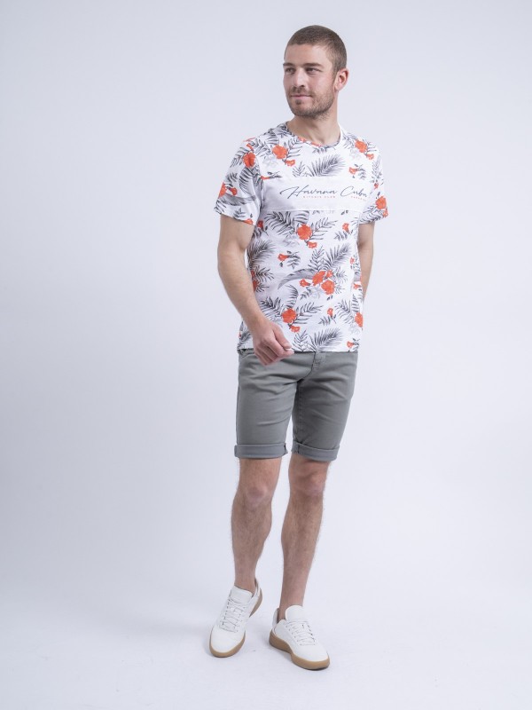 Ce T-shirt signé Ritchie Jeans est confectionné en pur coton léger et confortable. Sur fond flammé, il se pare d'un motif floral contrasté en all-over, et d'une sérigraphie "Havana Cuba" sur l'avant. Associez ce tee shirt à un bermuda pour un... En savoir plus >