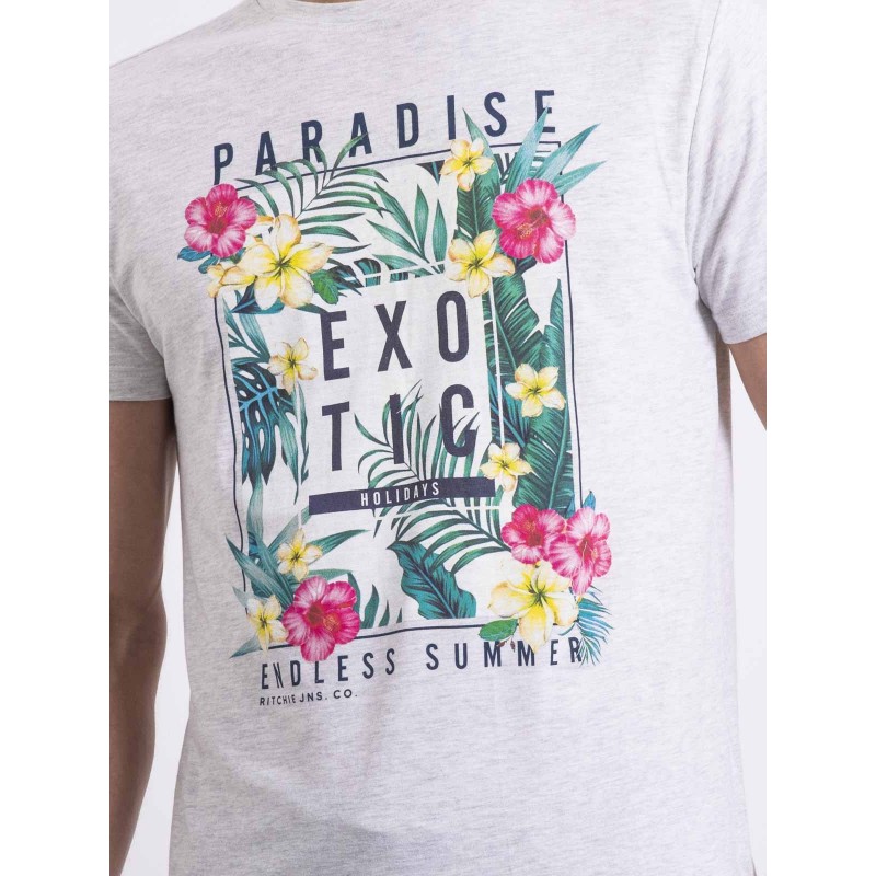 Ce tee shirt à manches courtes est confectionné dans un coton léger pour un porter fluide et confortable. Il se distingue par sa sérigraphie florale "PARADISE EXOTIC" ultratendance. Associez ce t-shirt homme à un bermuda de notre collection pour un style estival moderne.