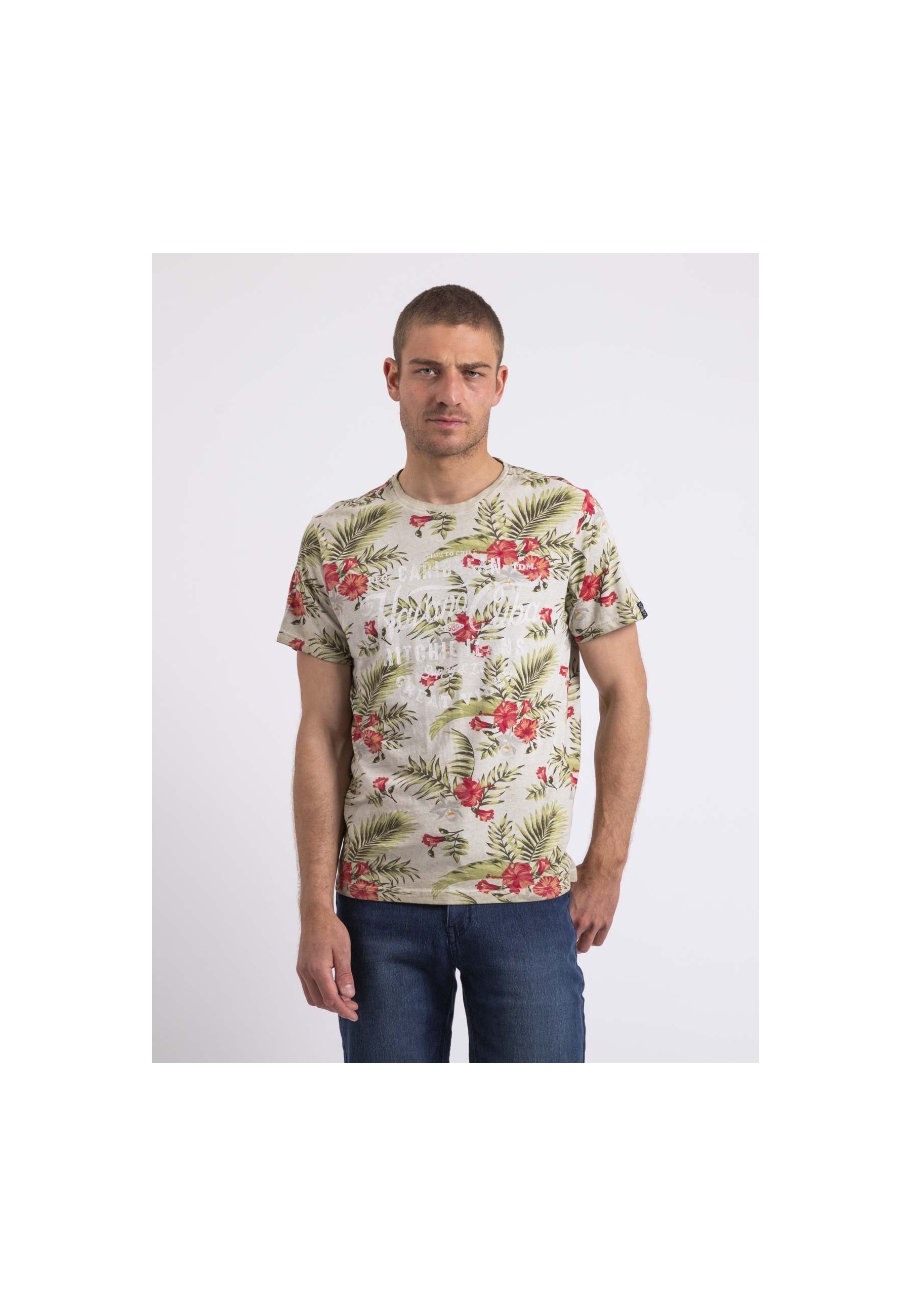 Ce T-shirt signé Ritchie Jeans est confectionné en pur coton léger et confortable. Sur fond au motif floral en all-over, il se pare d'une inscription vintage contrastée. Associez ce tee shirt à un bermuda pour un look estival tendance.... En savoir plus >