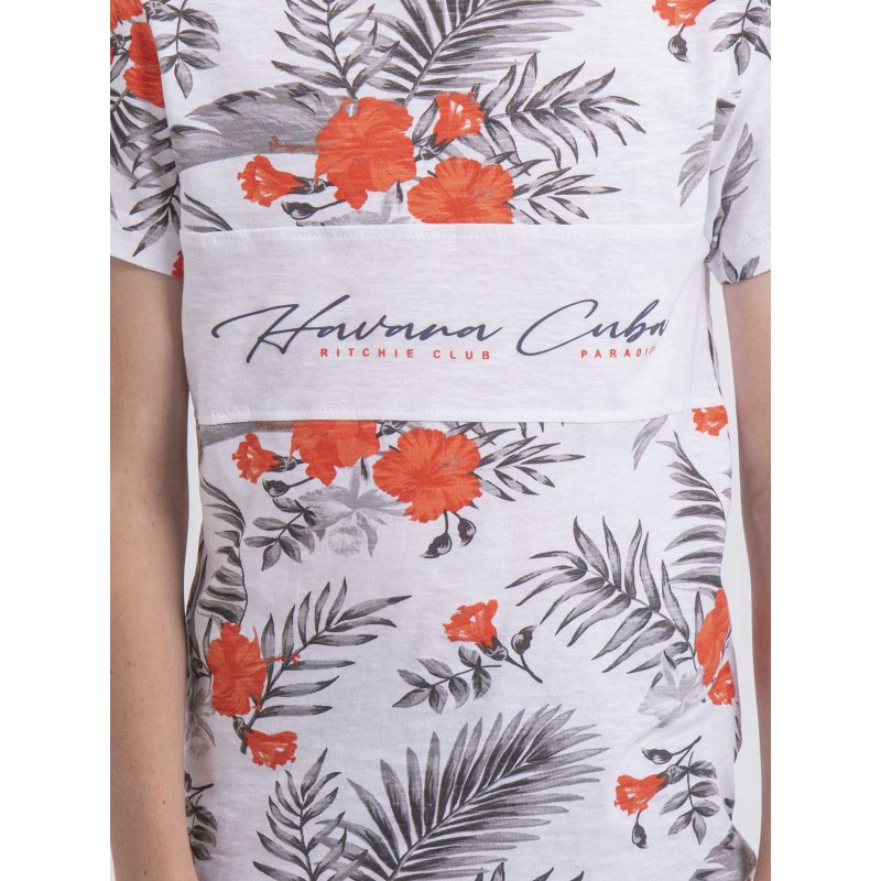 Ce T-shirt signé Ritchie Jeans est confectionné en pur coton léger et confortable. Sur fond flammé, il se pare d'un motif floral contrasté en all-over, et d'une sérigraphie "Havana Cuba" sur l'avant. Associez ce tee shirt à un bermuda pour un look estival tendance.