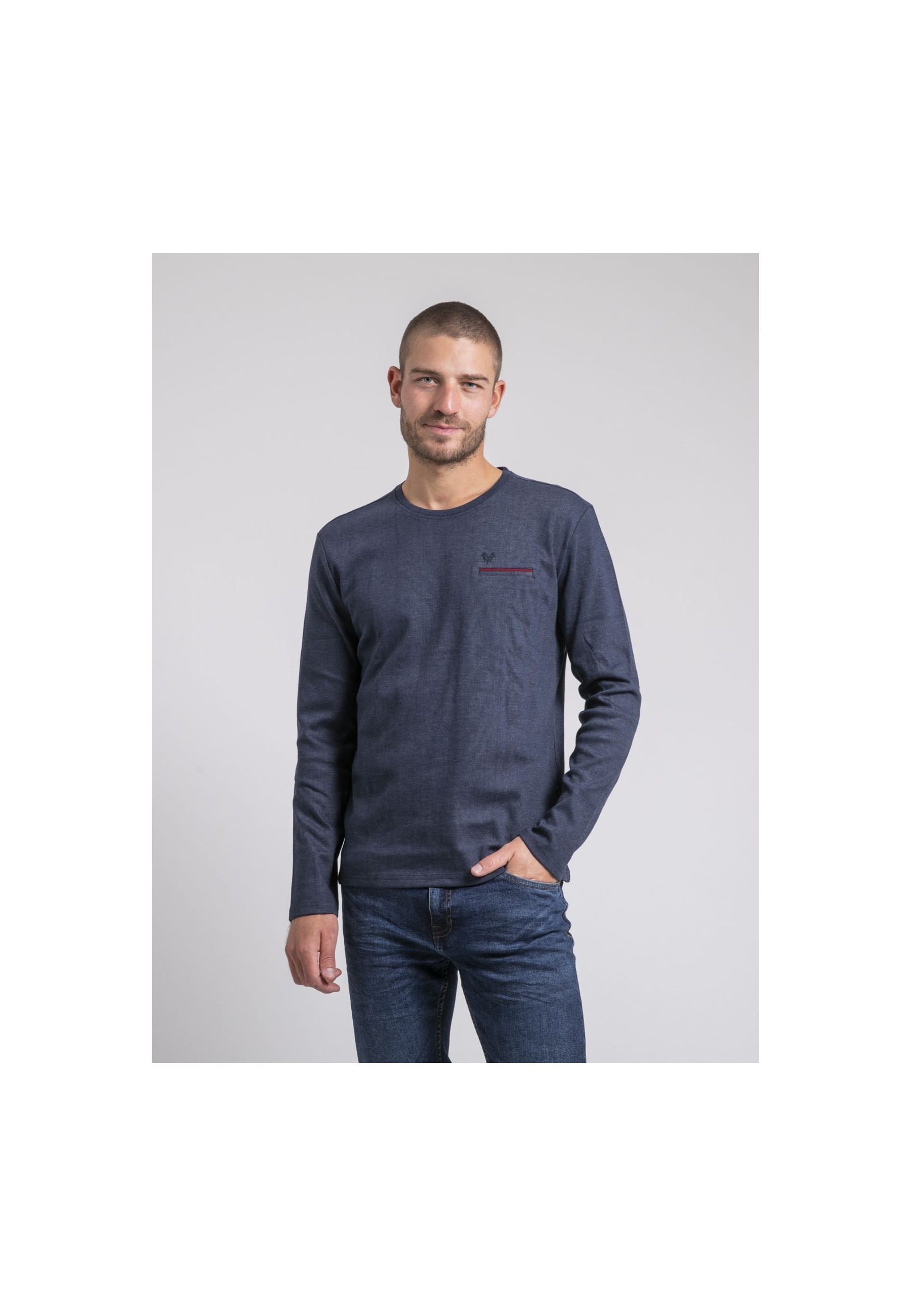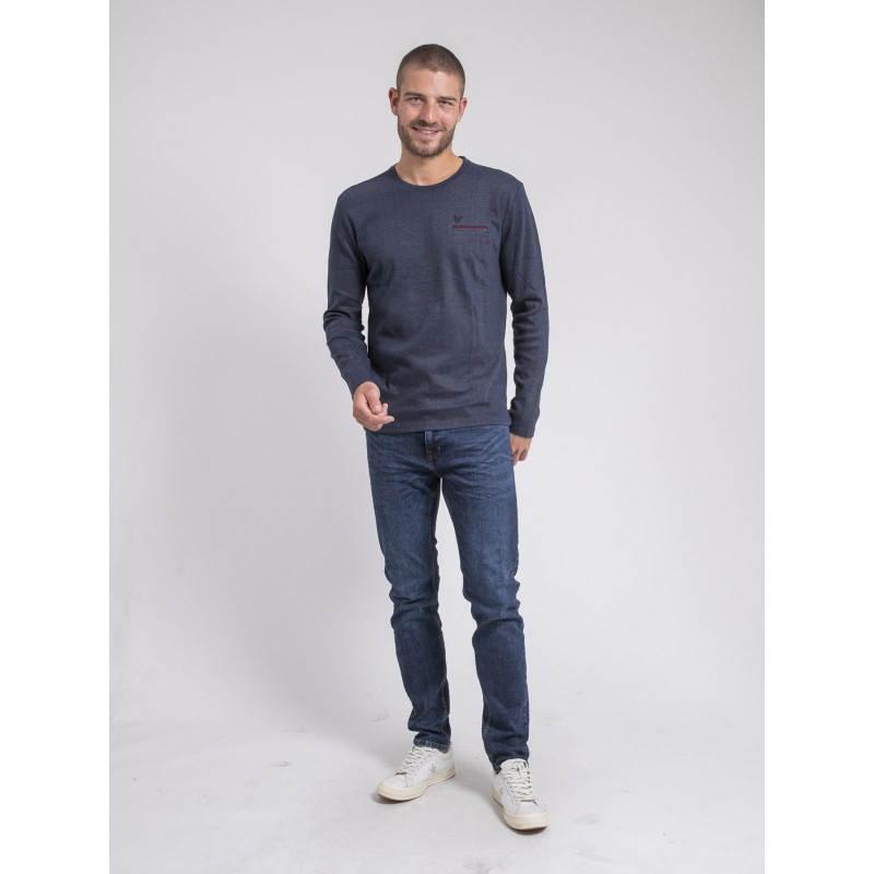 Ce tee-shirt à manches longues est confectionné en pur coton pour un porter confortable. Vous pourrez apprécier sa fausse poche passepoilée contrastante sur la poitrine avec sa broderie ton sur ton signée Ritchie Jeans.