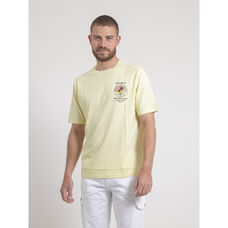 Ce T-shirt signé Ritchie Jeans est confectionné en pur coton léger et confortable. Il se pare d'une inscription imprimée contrastée et est réalisé dans une coupe "loose" pour plus de mode et de confort. Associez ce tee shirt à un bermuda pour un look fashion et décontracté.