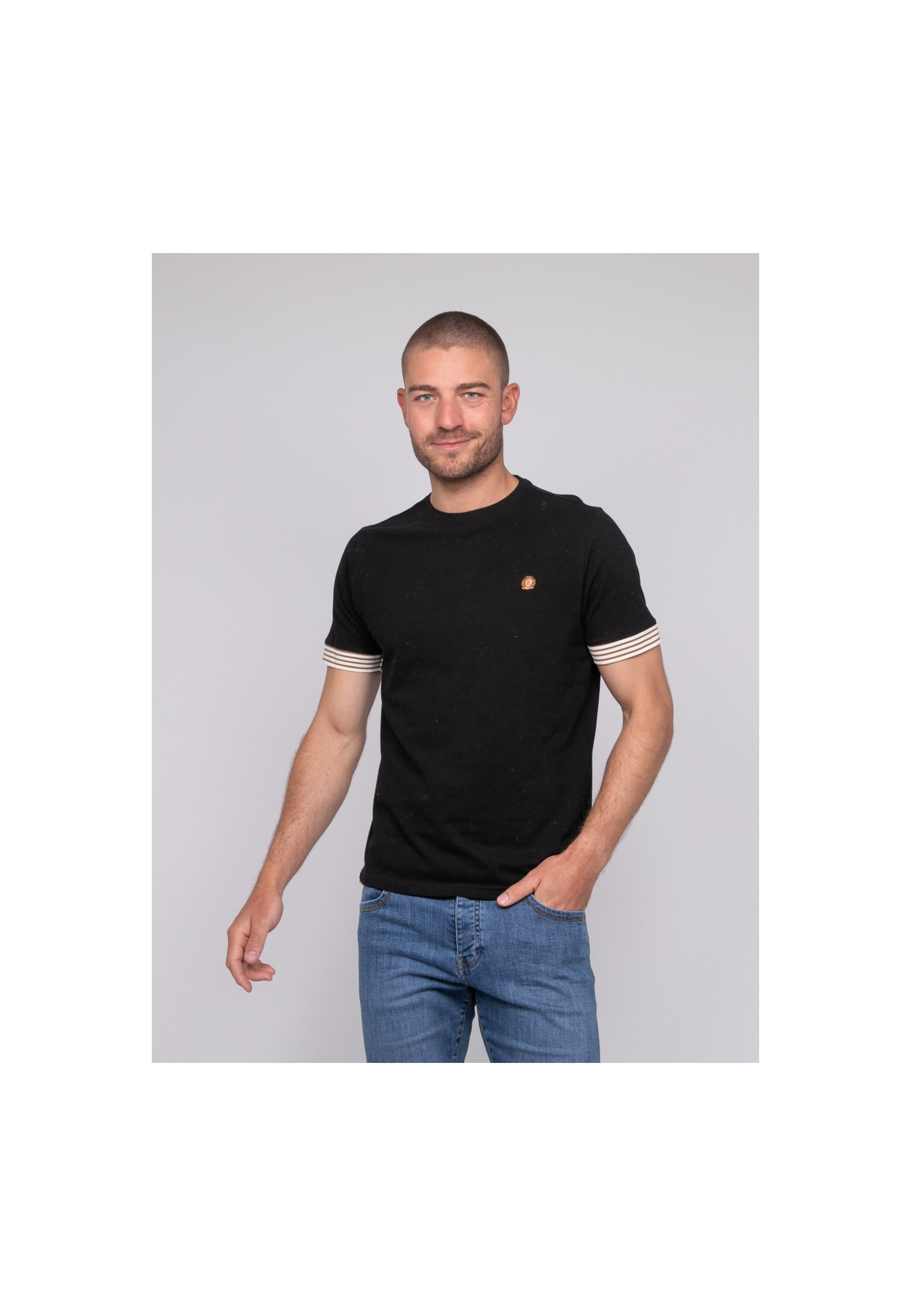 Un tee-shirt à la fois sobre et sophistiqué, parfait pour la saison hivernale. Son design minimaliste est subtilement rehaussé par des détails aux manches, apportant une touche d'originalité discrète. Une pièce idéale à associer avec un jean ou un chino pour une allure élégante et décontractée.