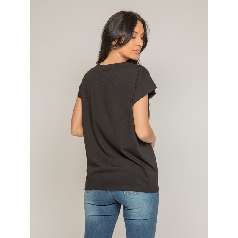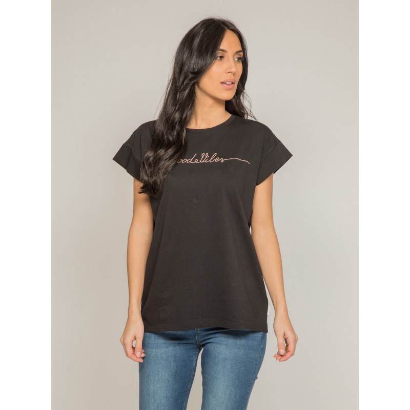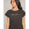 Ce T-shirt Dona Lisa séduit par son allure sporty chic. Le vêtement opte pour une coupe courte, avec manches courte et col rond, et de larges bords-côtes. On note le message coloré "good vibes" et le toucher presque soyeux qui confèrent de la... En savoir plus >