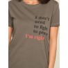 Adoptez ce tee-shirt Dona Lisa au look minimaliste et son inscription "I DON'T NEED TO FIGHT TO PROVE   I'M RIGHT". Vous pourrez l'associer à une jupe en denim telle que notre jupe short XALIMA pour une silhouette parfaite.