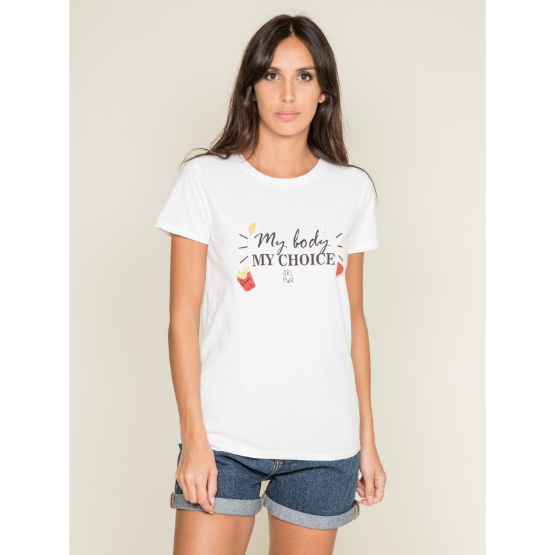 Ce T-shirt col rond Dona Lisa se distingue par son inscription "my body my choice" à l'avant, qui lui assure une note féminine tendance. Ce tee-shirt aux coloris lumineux s'accordera parfaitement avec un pantalon ou un short en denim.