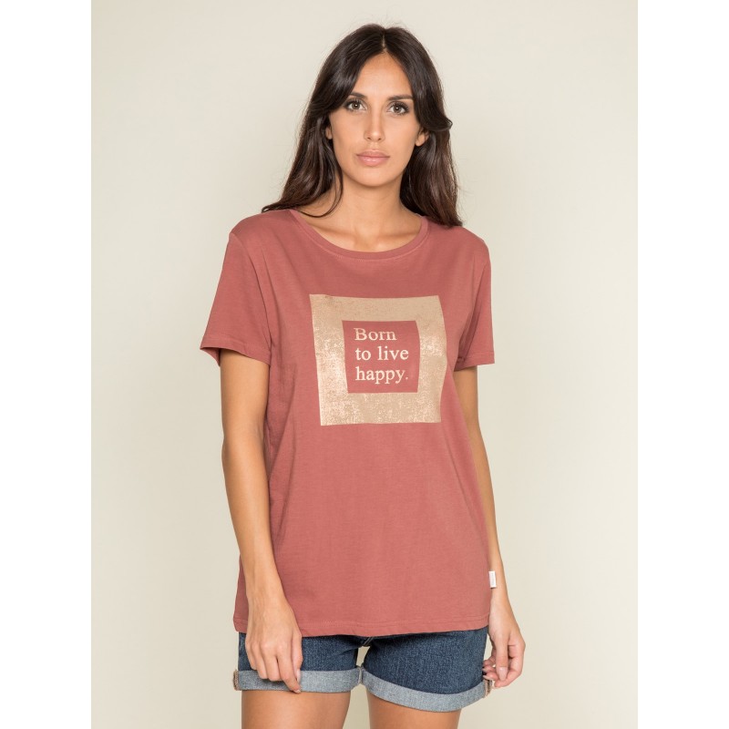 Adoptez ce tee shirt Dona Lisa au look minimaliste et son inscription "BORN TO LIVE HAPPY". Vous pourrez l'associer à un pantalon en denim tel que notre jean mom fit EDONIS pour une silhouette féminine parfaite.